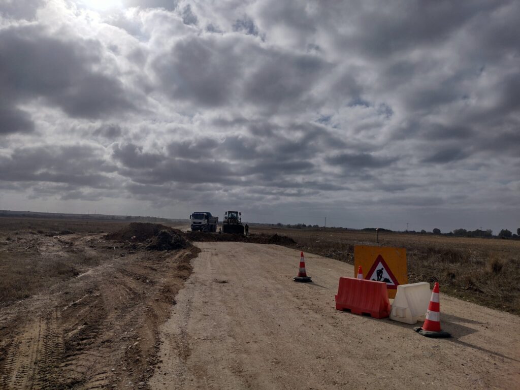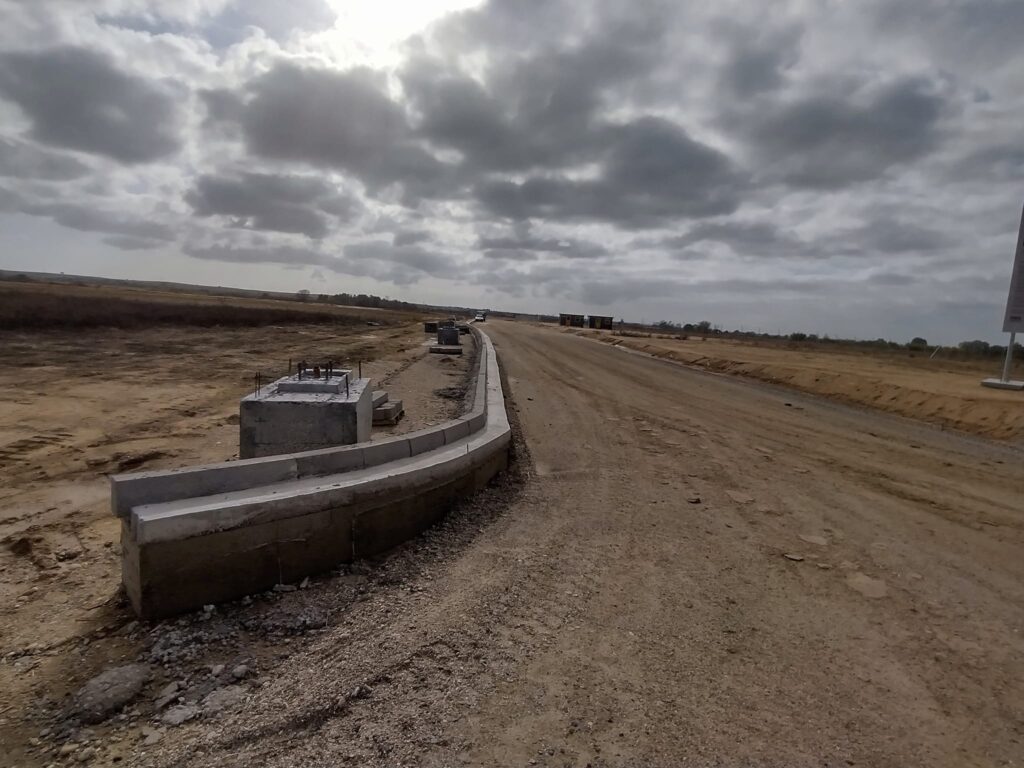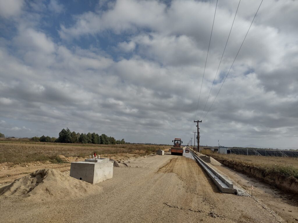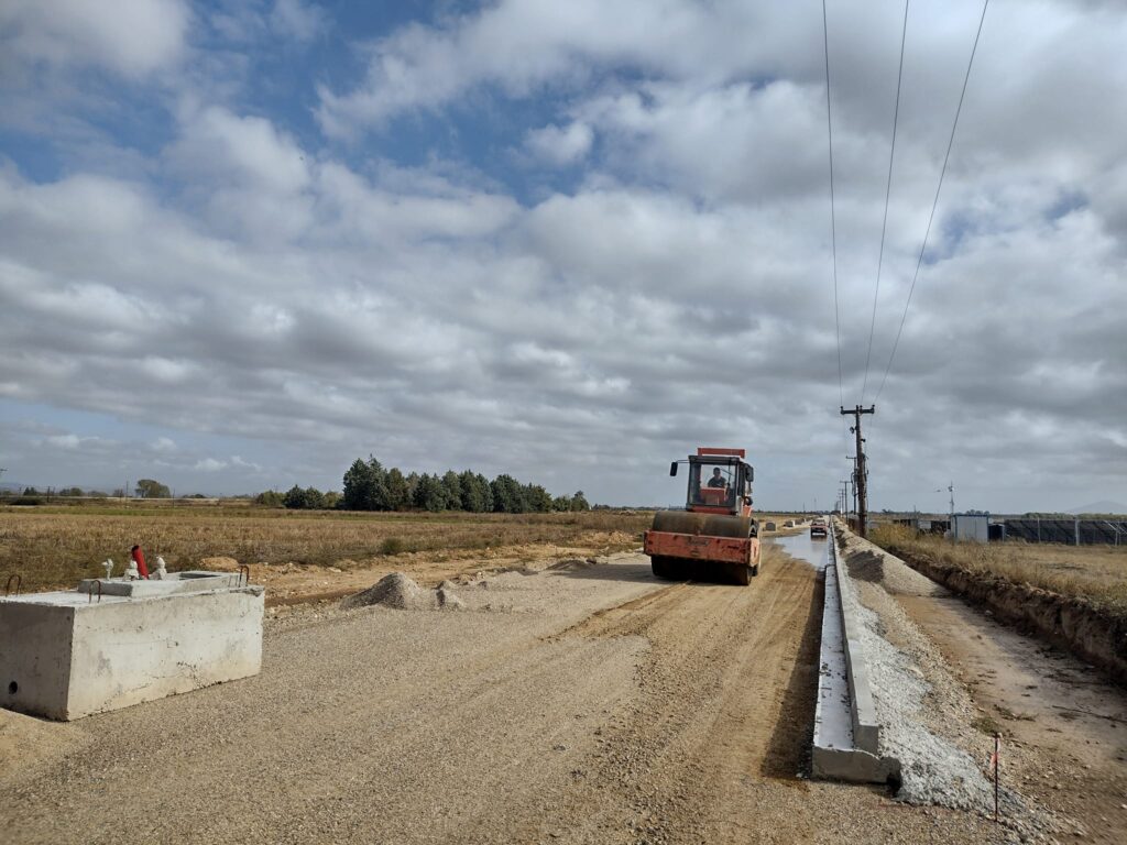 Προχωρούν με εντατικούς ρυθμούς τα έργα οδοποιίας και έχει ολοκληρωθεί η περίφραξη του εργοταξίου με συρματόπλεγμα και κράσπεδα.
