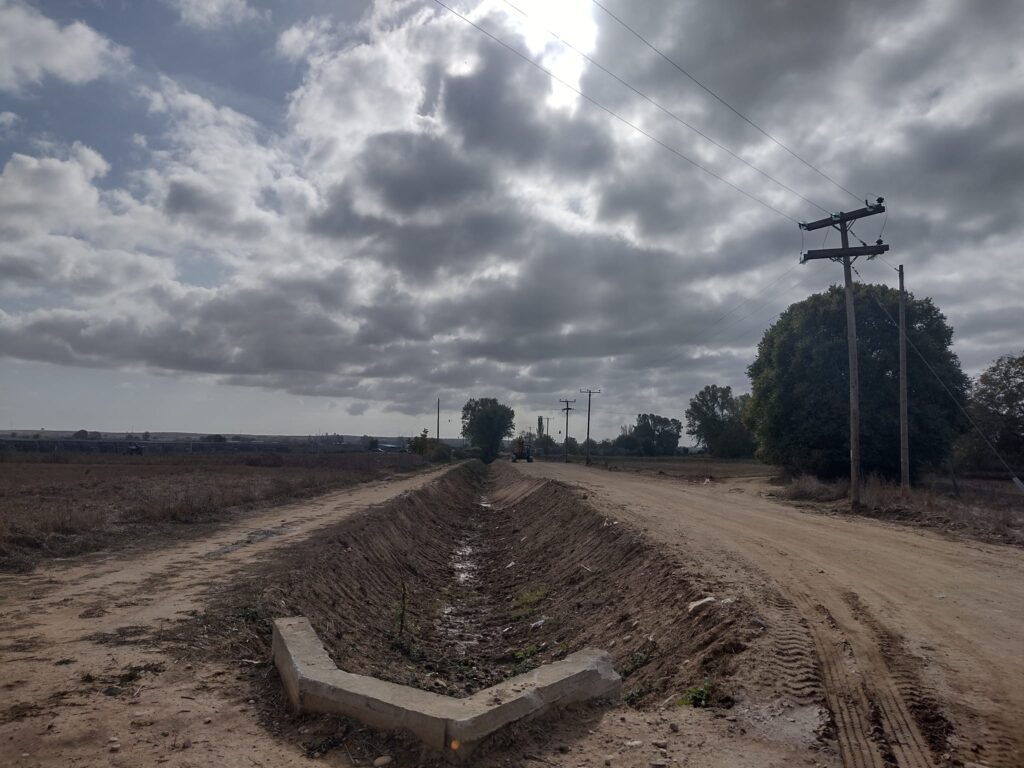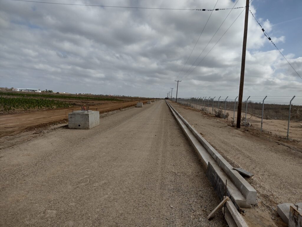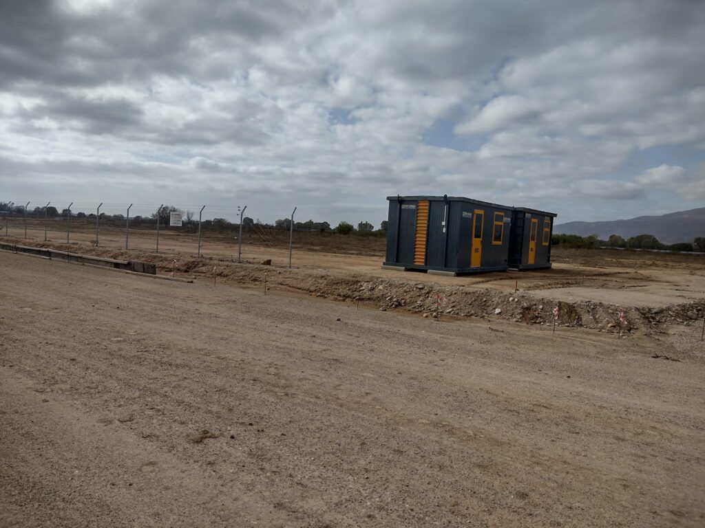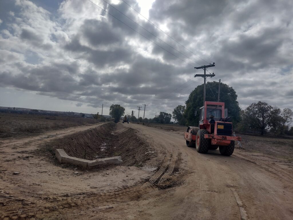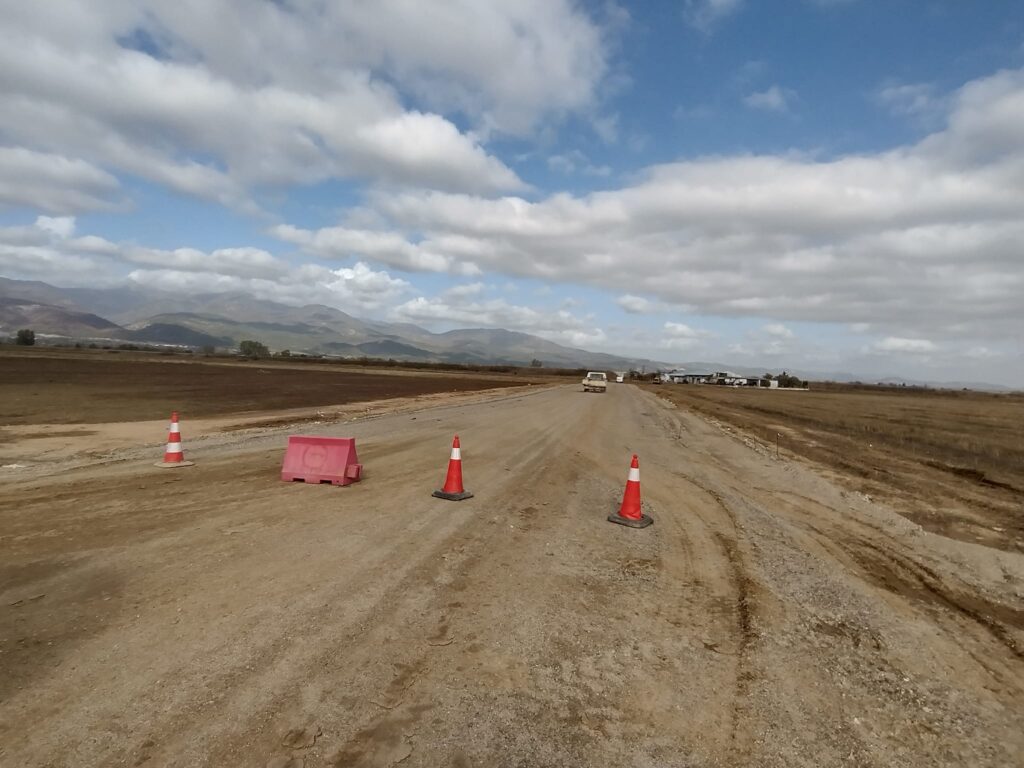 Προχωρούν με εντατικούς ρυθμούς τα έργα οδοποιίας και έχει ολοκληρωθεί η περίφραξη του εργοταξίου με συρματόπλεγμα και κράσπεδα.