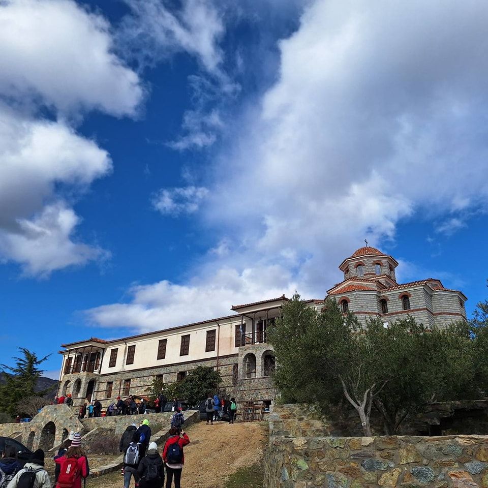 “Ξεκινήσαμε τη διαδρομή μας κάνοντας την πρώτη μας στάση στην Μονή του Οσίου Μάξιμου όπου μας υποδέχθηκε ο Ηγούμενος της Μονής Πατέρας Παύλος και μας διηγήθηκε την ιστορία της Μονής και του Αγίου στο αρχονταρίκι και στην τράπεζα απολαμβάνοντας παράλληλα το τσάι, τον καφέ μας και τα κεράσματα που μας προσέφεραν με τόσο μεράκι και αγάπη.”