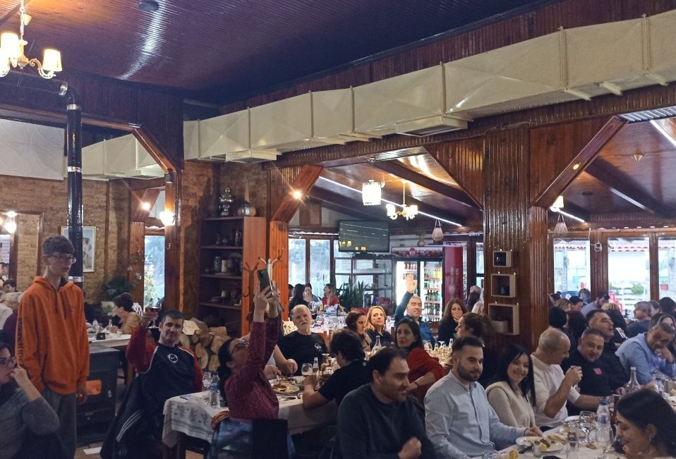 “Αφού τον ευχαριστήσαμε για την άριστη και θερμή φιλοξενία ξεκινήσαμε το δρόμο της επιστροφής όπου και καταλήξαμε στο ταβερνάκι “Τα Μαγγάλια” στο διπλανό χωριό, Μίσχος, στο όπου και απολαύσαμε το γεύμα μας και χορέψαμε υπό τους ήχους της ζωντανής παραδοσιακής μουσικής.! “