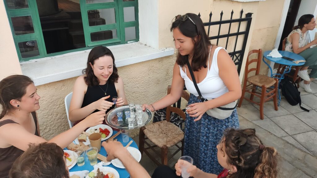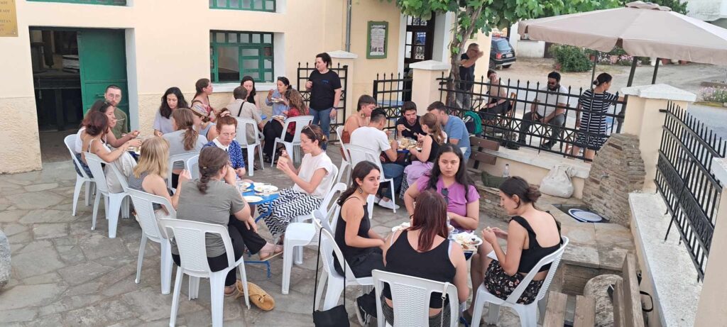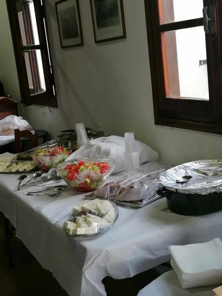 Αφού ξεναγήθηκαν στο μουσείο και πληροφορήθηκαν για τις ρίζες μας στην Ξυλαγανή, από πού προέρχονται οι παραδοσιακες μας συνταγές και γευσεις… στη θεωρία ….μπήκαμε στην πράξη . Φυσικά μαγείρεψαν και οι ίδιοι και γεύτηκαν τα παραδοσιακά εδέσματα που ετοίμασαν τα μέλη του ΠΟΞ. Το μενού είχε ότι υπήρχε και υπάρχει σε ένα ελληνικό σπίτι στο χωριο και όχι μόνο, όπως ζυμωτό ψωμί , πλουσια αγγουροντοματοματοσαλατα με εντόπιο ελαιόλαδο, εντόπιο καβουρμά και χωριάτικο λουκάνικο, μαγειρεμένα φασόλια στο πήλινο και ρεβύθια με ρύζι. Δεν θα μπορούσε να λείπει η παραδοσιακή φέτα Δουκιδη και ελιές φτιαγμένες από τα κορίτσια του συλλόγου. Ούζο και κρασί συνοδευτικά…και για επιδόρπιο κάτι εύκολο,γρήγορο και γευστικο …σιμιγδαλένιος χαλβάς με καβουρδισμένο αμύγδαλο και τη φτωχή μα πλούσια σε άρωμα κανελιτσα. Ακόμη δεν θα μπορούσε να λείπει το παραδοσιακό γλυκό του κουταλιού ,κεράσι, σύκο, κυδώνι φτιαγμένα επίσης από τα μέλη του συλλόγου συνοδευτικά με γιαούρτι. Πολλές οι συνταγές του χωριού και κάθε χρόνο προσπαθούμε να συμπεριλάβουμε κάτι καινούριο για τα παιδιά.