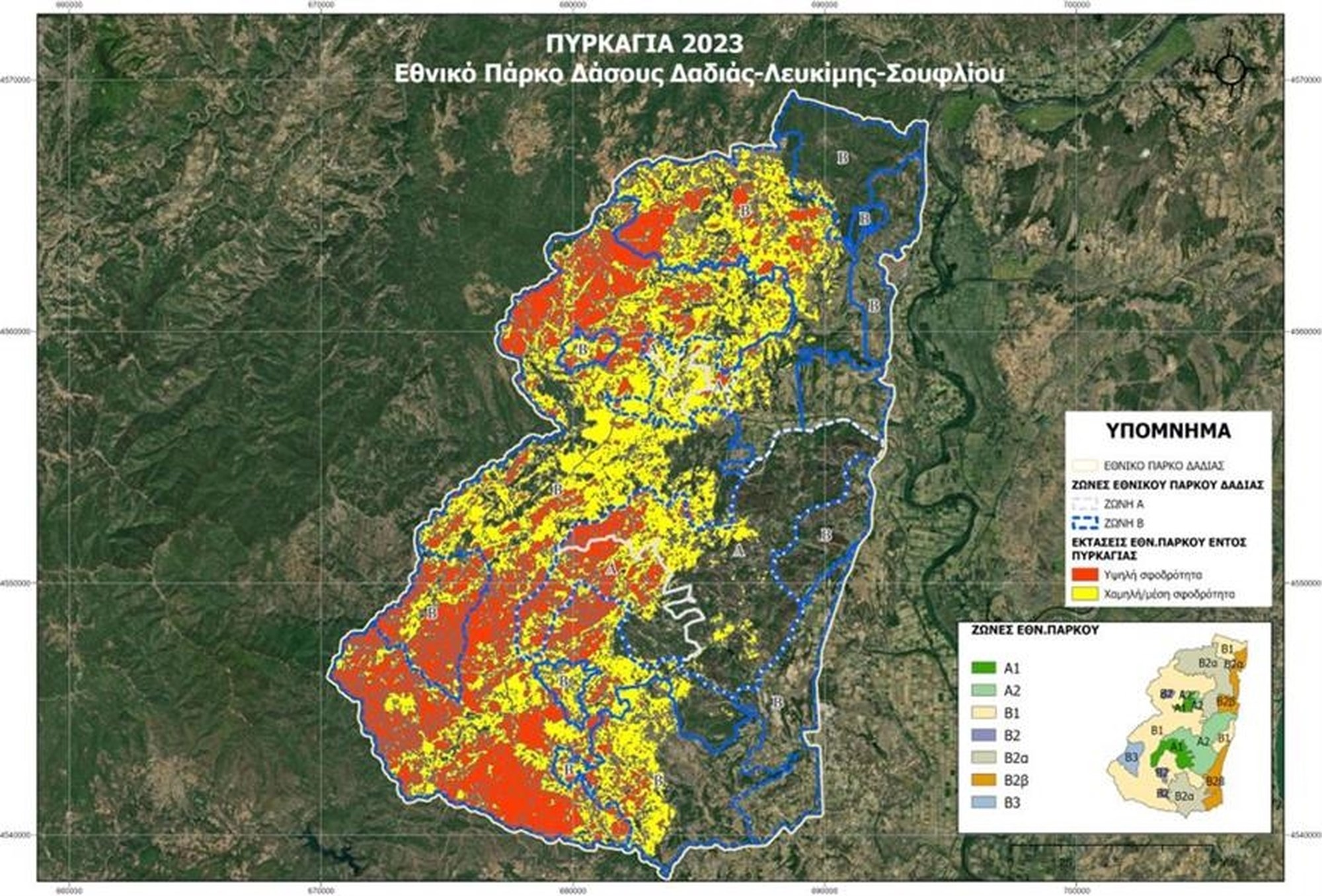 Έβρος: κάηκε σχεδόν το 60% του δάσους της Δαδιάς ή 245.299 στέμματα – Χάρτης με τη σφοδρότητα της φωτιάς