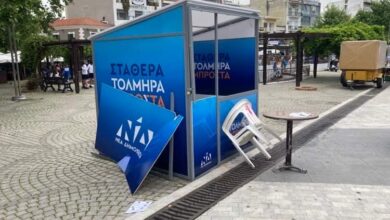 Κομοτηνή: άγνωστοι βανδάλισαν το εκλογικό περίπτερο της ΝΔ στην πλατεία