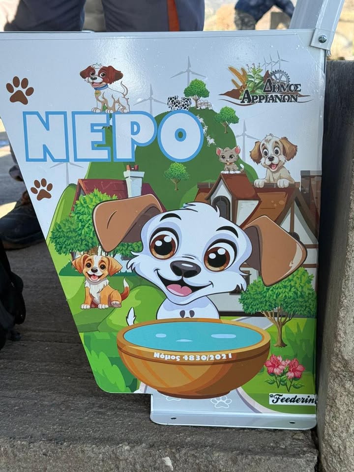 Ο Δήμος Αρριανών, σε εφαρμογή της υπ’αριθ. 57/2024 απόφασης του Δημοτικού Συμβουλίου, προχώρησε στην προμήθεια και τοποθέτηση 8 ταϊστρών–ποτιστρών για αδέσποτα και δεσποζόμενα ζώα, η οποία αναμένεται να ολοκληρωθεί άμεσα τις επόμενες ημέρες, σε επιλεγμένα σημεία του Δήμου και συγκεκριμένα: 2 στη Φιλλύρα, 1 στο Λύκειο, 3 στα Αρριανά και 2 στον Άρατο.