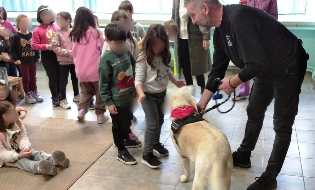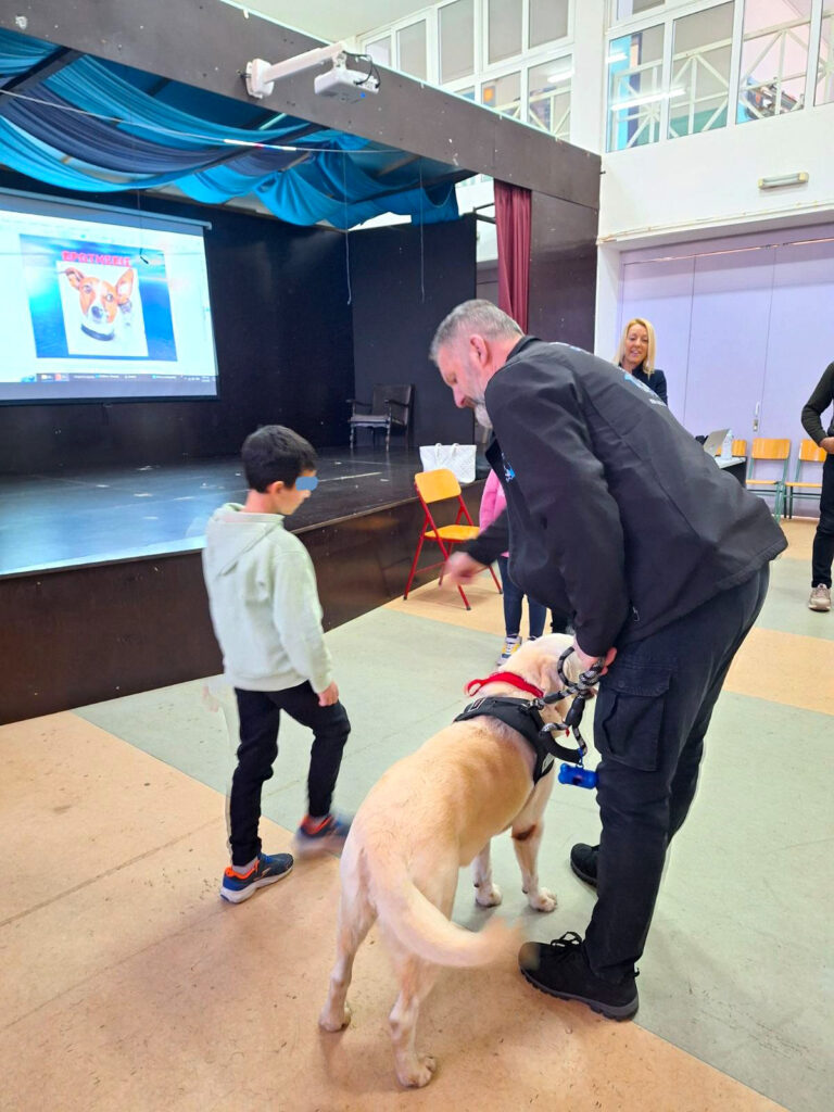 Το πρόγραμμα περιελάμβανε θεωρητικό και πρακτικό μέρος το οποίο υλοποιήθηκε χάρη στο ειδικά εκπαιδευμένο Λαμπραντόρ ΛΕΞΙΣ που με την ήρεμη παρουσία της παρακίνησε τα παιδιά να τη χαϊδέψουν και να εξοικειωθούν μαζί της.