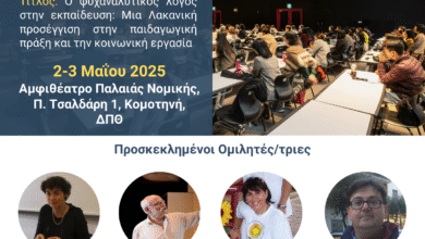 Κομοτηνή :διημερίδα με θέμα «Ο ψυχαναλυτικός λόγος στην εκπαίδευση: Μια Λακανική προσέγγιση στην παιδαγωγική πράξη και την κοινωνική εργασία»