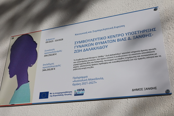 Το νέο Συμβουλευτικό Κέντρο Υποστήριξης Γυναικών Θυμάτων Βίας «Ζωή Δαλακλίδου», που δημιουργήθηκε με χρηματοδότηση 344.250 ευρώ από την Περιφέρεια Ανατολικής Μακεδονίας και Θράκης μέσω του Προγράμματος «Ανατολική Μακεδονία – Θράκη 2021-2027», εγκαινιάστηκε το μεσημέρι της Τρίτης 25 Νοεμβρίου 2025, στην Ξάνθη, στο πλαίσιο της Παγκόσμιας Ημέρας Εξάλειψης της Βίας κατά των Γυναικών.