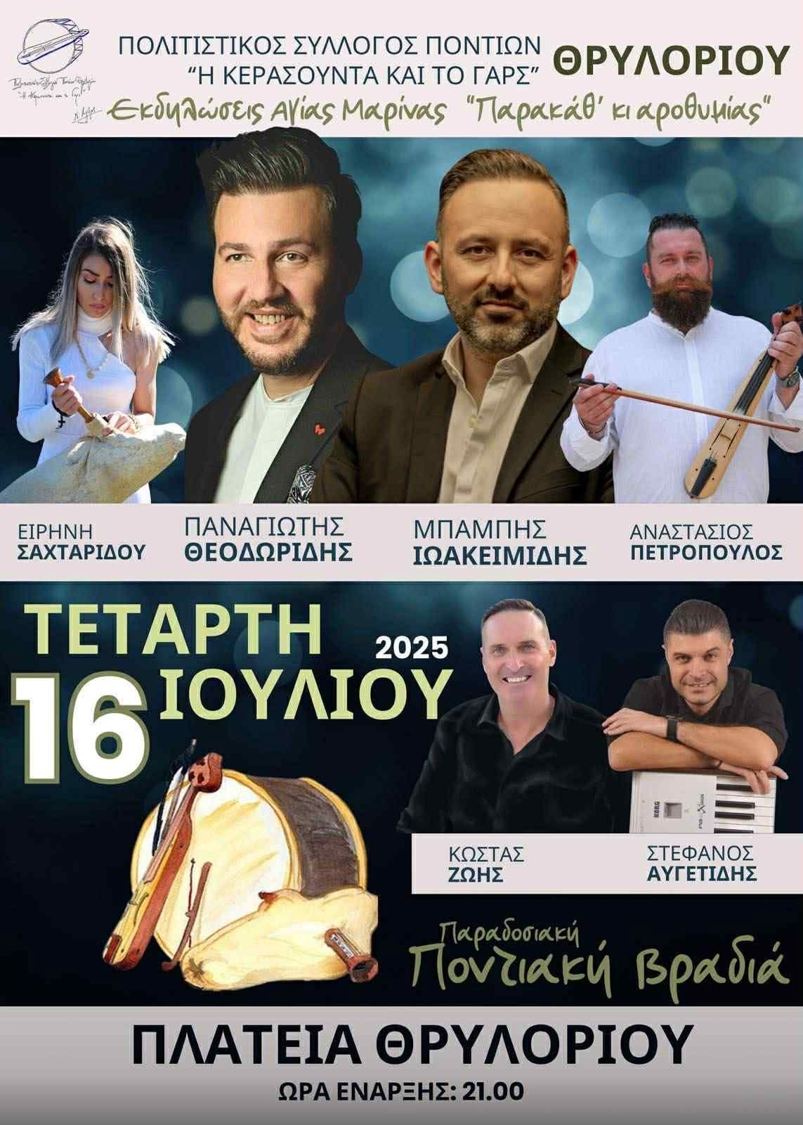 ΕΚΔΗΛΩΣΕΙΣ ΑΓΑΣ ΜΑΡΙΝΑΣ ΘΡΥΛΟΡΙΟΥ 2025