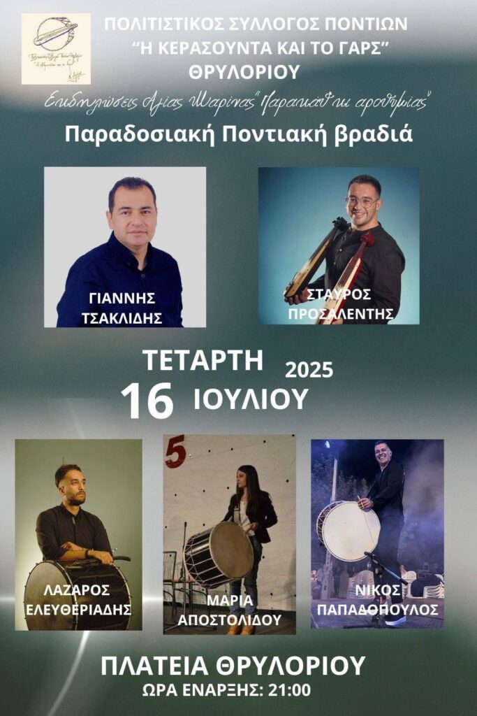 Παραδοσιακή ποντιακή βραδιά με τους καταξιωμένους πόντιους καλλιτέχνες: