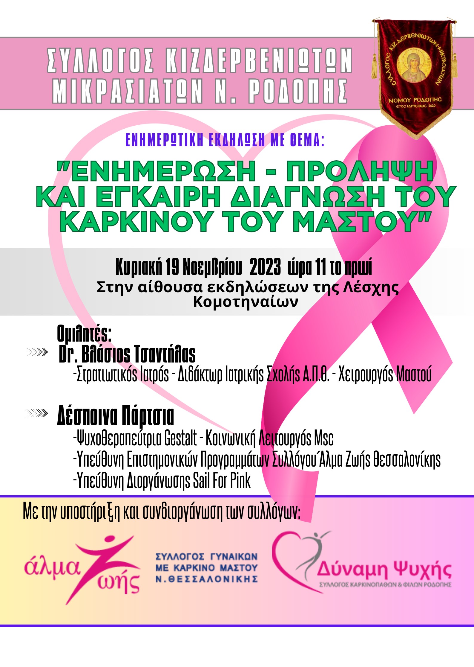 Ενημερωτική εκδήλωση για τον καρκίνο του μαστού στην Κομοτηνή