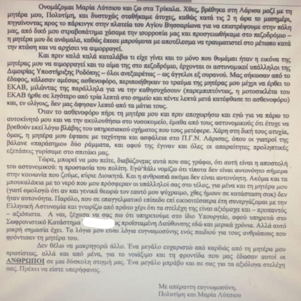 Εδώ και η επιστολή ευγνωμοσύνης για την βοήθεια των αστυνομικών της Ροδόπης