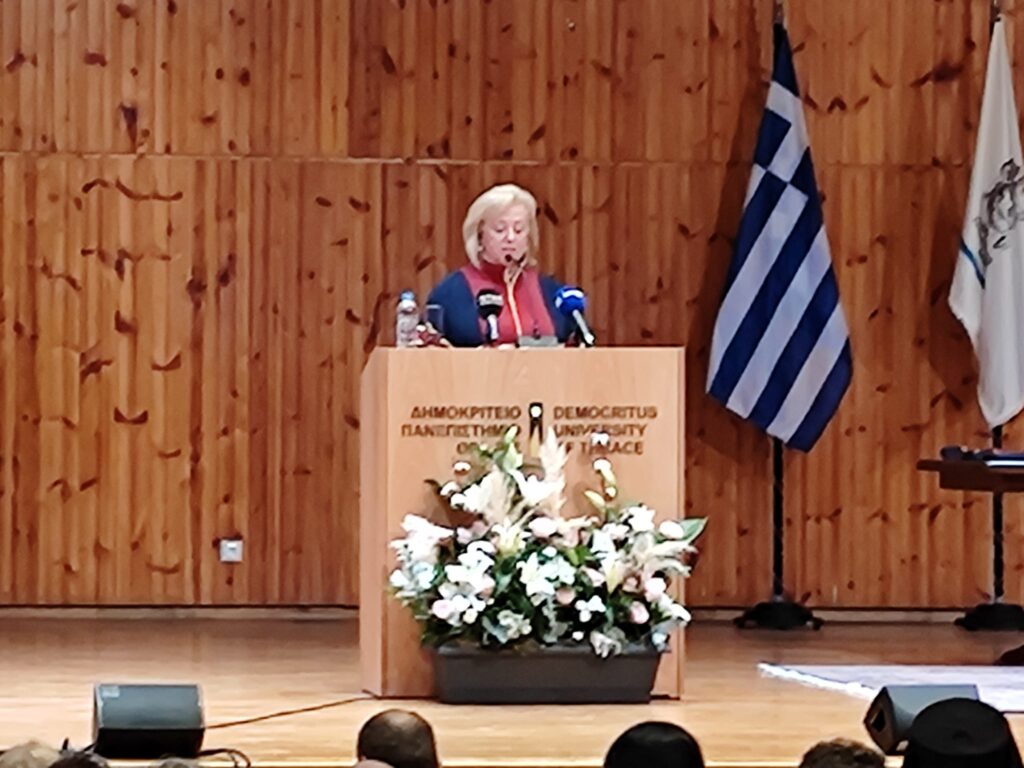 Η Πρόεδρος της Δημοκρατίας Κατερίνα Σακελλαροπούλου, σε ειδική τελετή στο Δημοκρίτειο Πανεπιστήμιο Θράκης, αναγορεύθηκε σήμερα σε Επίτιμη Διδάκτορα του Τμήματος Πολιτικής Επιστήμης της Σχολής Κοινωνικών, Πολιτικών και Οικονομικών Επιστημών.