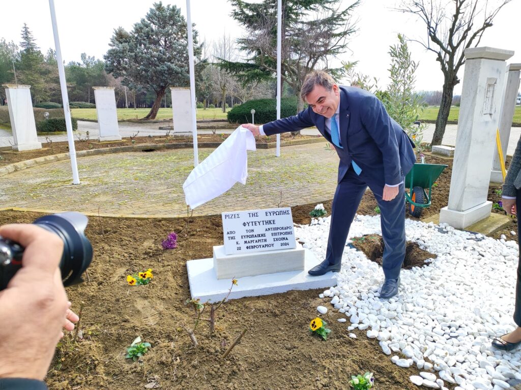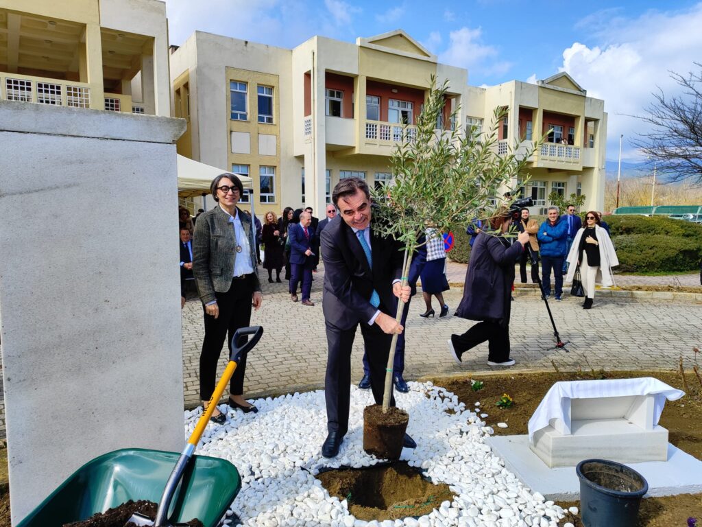 Ο κ Σχοινας νωρίτερα πραγματοποίησε συμβολική φύτευση ελιάς στον περιβάλλοντα χώρο του κτηρίου Διοίκησης (Πρυτανεία) του Πανεπιστημίου, στο πλαίσιο της εκδήλωσης “Ρίζες της Ευρώπης” που διοργανώνεται από το Europe Direct ΑΜΘ, παρουσία αρχών, εκπροσώπων της κοινωνίας, και μαθητών σχολείων που συμμετέχουν στο πρόγραμμα «Σχολεία πρέσβεις του Ευρωπαϊκού Κοινοβουλίου».