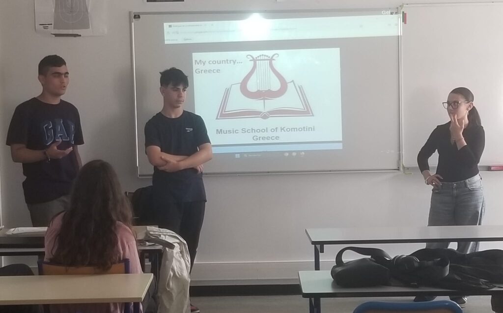 Στην 3η & τελευταία διασχολική συνάντηση του ευρωπαϊκού προγράμματος Erasmus+ “Let’s CLIL together!” που πραγματοποιήθηκε στο Mourenx της Γαλλίας, συμμετείχαν 2 εκπαιδευτικοί και 6 μαθητές του Μουσικού Σχολείου Κομοτηνής. Το πρόγραμμα εστιάζει στη μέθοδο CLIL (Content and Language Integrated Learning), η οποία συνδυάζει τη διδασκαλία γνωστικών αντικειμένων με τη χρήση ξένης γλώσσας, προάγοντας τη γλωσσική ανάπτυξη και τη διεπιστημονική μάθηση.