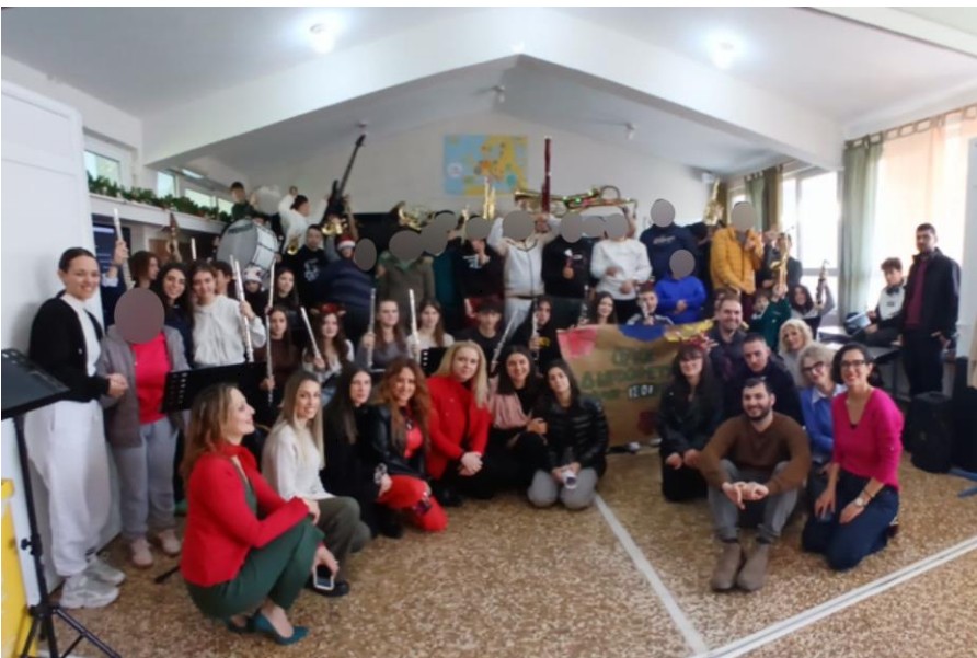 Η ορχήστρα έπαιξε πέντε (5) δημοφιλή χριστουγεννιάτικα τραγούδια, με τους μαθητές και τους