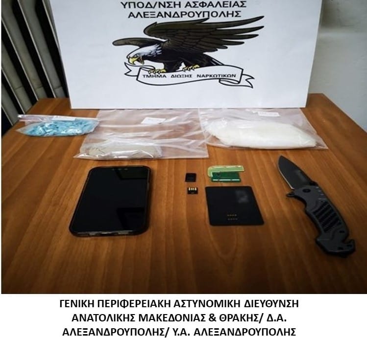 Συνελήφθη χθες (11-9-2023) το πρωί, στο Συνοριακό Σημείο Διέλευσης Νυμφαίας Ροδόπης, από αστυνομικούς του Τμήματος Δίωξης Ναρκωτικών της Υποδιεύθυνσης Ασφάλειας Αλεξανδρούπολης, ένας αλλοδαπός, σε βάρος του οποίου σχηματίσθηκε δικογραφία για παραβάσεις της νομοθεσίας περί ναρκωτικών και περί όπλων.