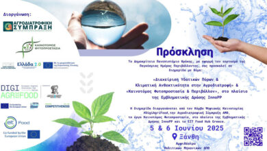 Διημερίδα «Διαχείριση Υδατικών Πόρων και Κλιματική Ανθεκτικότητα στην Αγροδιατροφή» & «Καινοτόμος Φυτοπροστασία & περιβάλλον, στο πλαίσιο της Εμβληματικής Δράσης InnoPP στην Ξάνθη, 5 και 6 Ιουνίου 2025