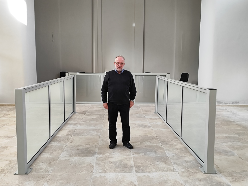 Ακολούθησε ξενάγηση των δημοσιογράφων στο ανακαινισμένο ισόγειο χώρο του Δημαρχιακού Μεγάρου στον οποίο θα στεγαστούν οι δημοτικές υπηρεσίες οι οποίες προσωρινά στεγάζονται στο κτίριο της πρώην ΔΥΟ Σαπών .