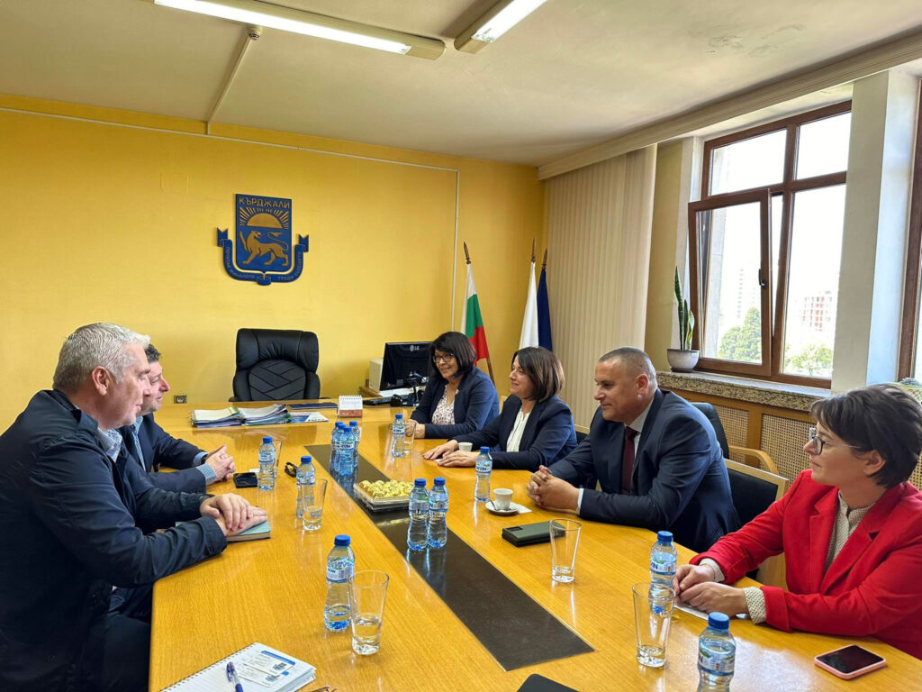 Η πρώτη στάση ήταν στον γειτονικό Δήμο Κίρντζαλι (Kardzhali), όπου πραγματοποιήθηκε συνάντηση στο Δημαρχείο της πόλης. Από την πλευρά του Δήμου Κίρντζαλι συμμετείχαν οι αντιδήμαρχοι, Βεσελίνα Τιχομίροβα (Veselina Tihomirova) και Ντάνιελ Ντέλτσεφ (Daniel Delchev), καθώς και υπηρεσιακά στελέχη του δήμου.