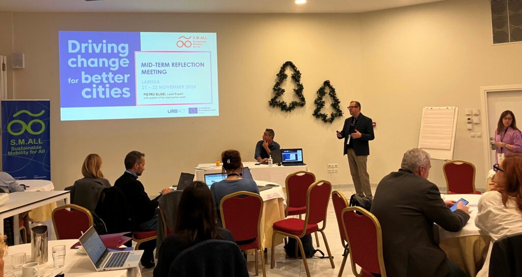 Ο Δήμος Κομοτηνής συμμετείχε ενεργά στην 6η Διακρατική Συνάντηση του ευρωπαϊκού έργου URBACT S.M.ALL (Sharing Urban Solutions for Sustainable Mobility for ALL), που πραγματοποιήθηκε στη Λάρισα πριν λίγες μέρες. Στη συνάντηση συμμετείχαν εκπρόσωποι από όλους τους εταίρους του έργου, με σκοπό την προώθηση βιώσιμων λύσεων αστικής κινητικότητας και προσβασιμότητας για όλους τους πολίτες. Στην αποστολή του Δήμου Κομοτηνής συμμετείχαν εκπρόσωποι της τοπικής ομάδας δράσης, ενισχύοντας τη δικτύωση και την ανταλλαγή τεχνογνωσίας με φορείς από άλλες ευρωπαϊκές πόλεις.