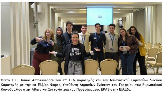 Ένα μεγάλο μπράβο στους Junior Ambassadors: Δεληστογιαννάκη Ελεάνα, Καλατζή Δήμητρα, Καραγιάννη Κωνσταντίνο, Χούσκογλου Βολκάν (2ο ΓΕΛ Κομοτηνής) Καάν Γιουτζέλ, Γαμζέ Μαχμούτ Αλή, Αφρά Μπίμπαση, Ιμράν Δελή Ομέρ (Μειονοτικό Γυμνάσιο Λύκειο Κομοτηνής) Βεργίδου Στέλλα, Ζαϊτίδη Άγγελο, Κετίπη Ιωάννα, Πάντζο Αναστάσιο (4ο ΓΕΛ Ξάνθης)Καλογερόπουλο Δημήτρη, Κεσογλίδη Γιώργο, Μακαρίου Δανάη,Μεζιάν Λουίζα(5οΓΕΛΚαβάλας),ΒλάχουΜαρία-Ελένη,Καζεπίδου Παρασκευή,Πιτσίκογλου Ιωάννη,ΣτεφανίδηΦίλιππο-Γεώργιο(1οΕΠΑ.ΛΔράμας)και