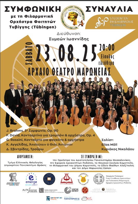 Συμφωνική Συναυλία της Φιλαρμονικής Ορχήστρας Φοιτητών Τυβίγγης στο Αρχαίο Θέατρο Μαρώνειας-To Σάββατο 23 Αυγούστου