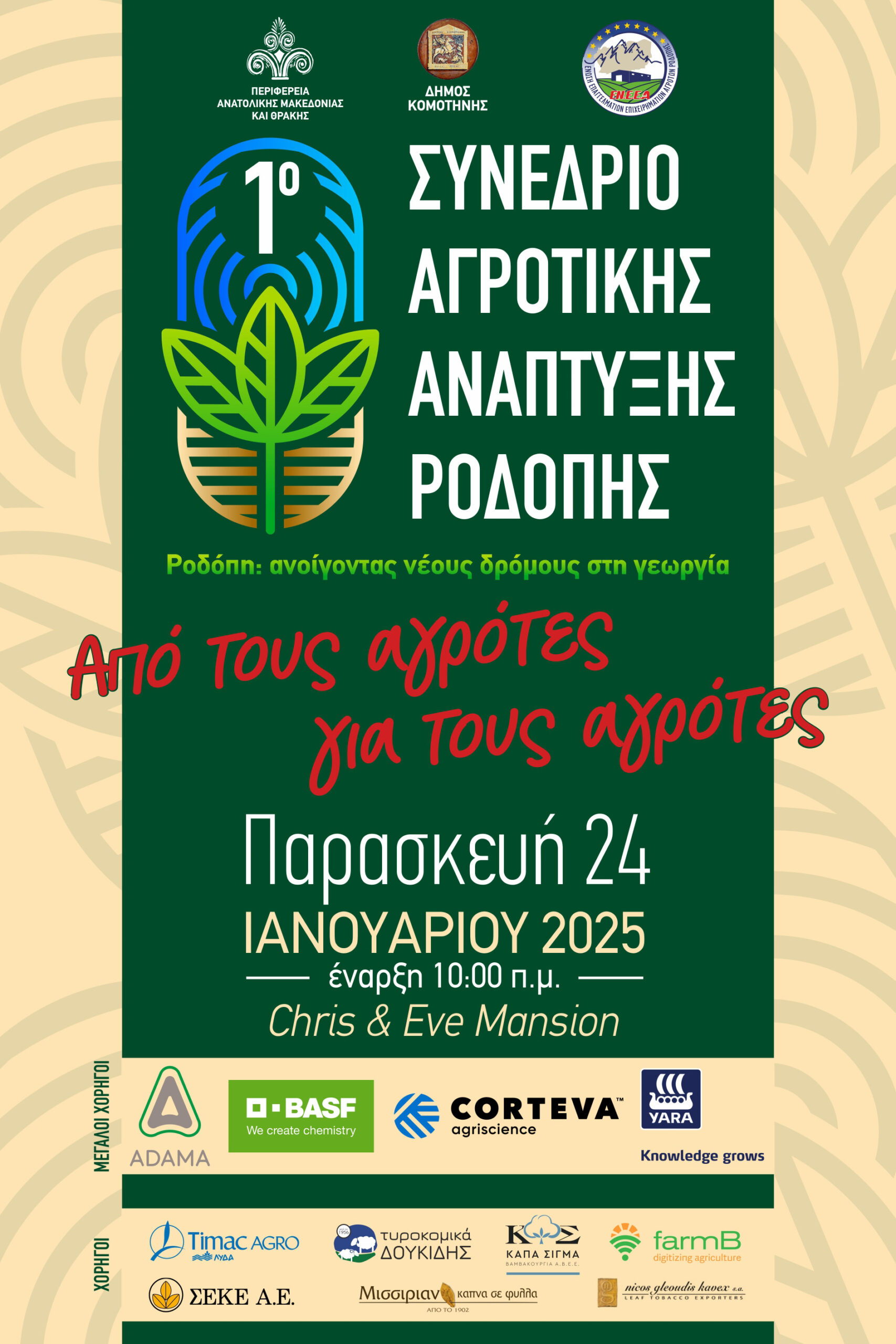 Το Συνέδριο στηρίζουν οι Αγροτικοί Σύλλογοι της Ροδόπης και ο Συνεταιρισμός Καπνοπαραγωγών Θράκης .