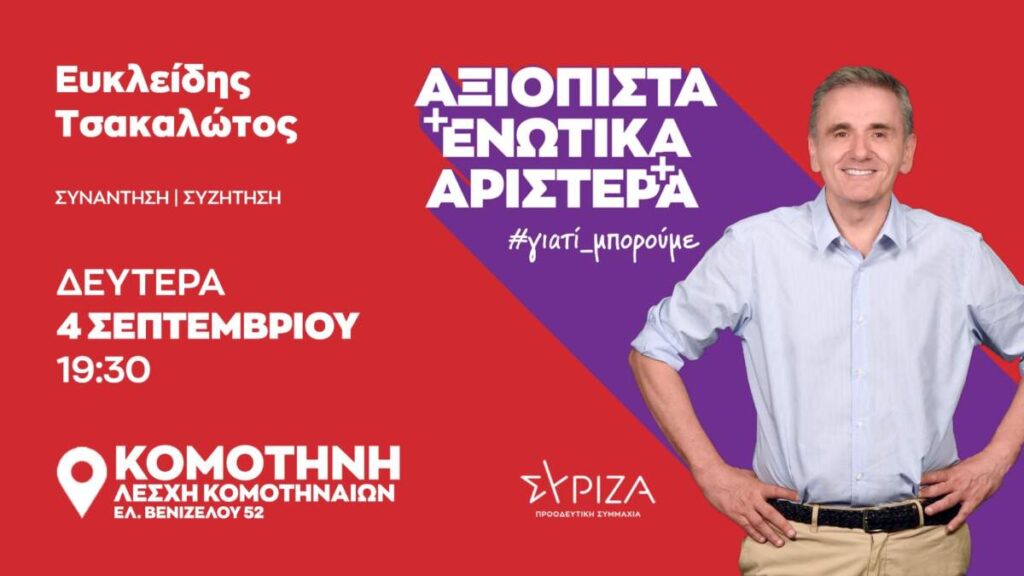 Στο μεταξύ σε αυτό το σύντομο διάστημα της προεκλογικής εκστρατείας των υποψηφίων Προέδρων στον μοναδικό Νομό που το κόμμα κέρδισε μάλιστα δύο φορές ,τη Ροδόπη θα επισκεφθεί ο Ευκλείδης Τσακαλώτος την προσεχή Δευτέρα 4 Σεπτεμβρίου.