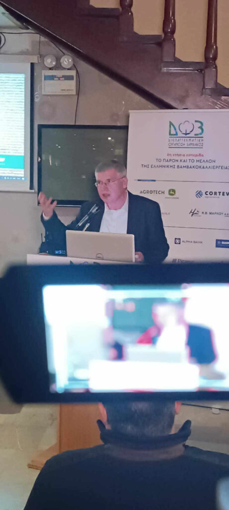 Αξιόλογοι ομιλητές από το χώρο της εμπορίας ,της εκκόκκισης ,της καλλιέργειας του βαμβακιού ανέλυσαν την δύσκολη συγκυρία στην οποία βρίσκεται το προϊόν και περιέγραψαν την προοπτική του τόσο μέσα από το πρίσμα των διεθνών αγορών όσο και της ανάγκης κατοχύρωσης της ποιοτικής του στάθμης ως συγκριτικό πλεονέκτημα .