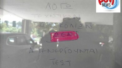 “Λόγω Τεχνικών δυσκολιών ΔΕΝ διενεργούνται τεστ” αναγράφει η σχετική θυροκολλημένη,…