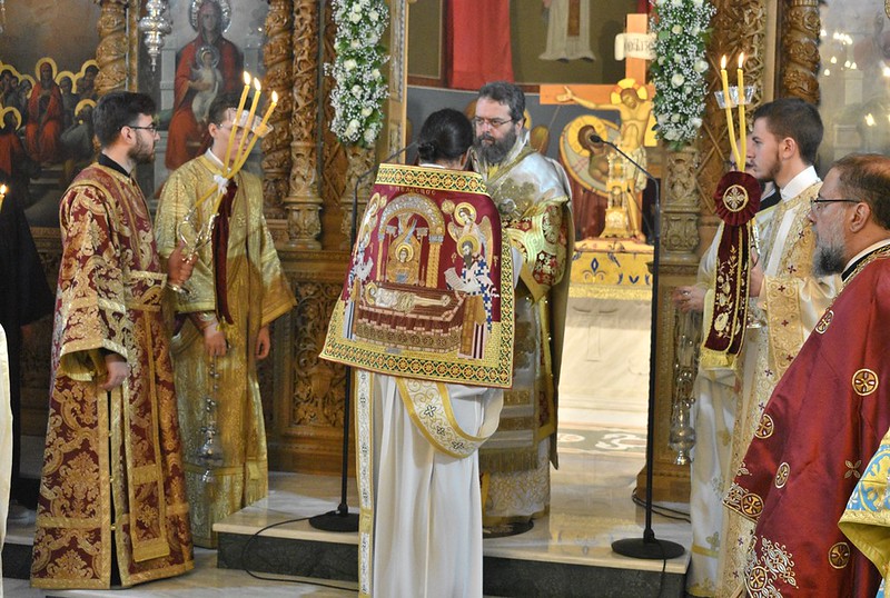 Πρό τῆς ἀπολύσεως τῆς Θείας Λειτουργίας, ὁ Σεβασμιώτατος ἀπένειμε τό ὀφφίκιον τοῦ Σταυροφόρου Οἰκονόμου στόν Νεοχειροτοθέντα π.Κωνσταντίνο Νούσια καί στόν π.Λουκά Γκαβαρδίνα Προϊστάμενον τοῦ ἐν λόγω Ἱεροῦ Ναοῦ, ἐξῆρε δέ τό ἦθος, τήν ἀφοσίωση καί τήν προθυμία ἀνταποκρίσεως τους στά κελεύσματα τοῦ Ἐπισκόπου καί τίς ἀνάγκες τῆς Ἱερᾶς Μητροπόλεως καί τούς εὐχήθηκε καταλλήλως.