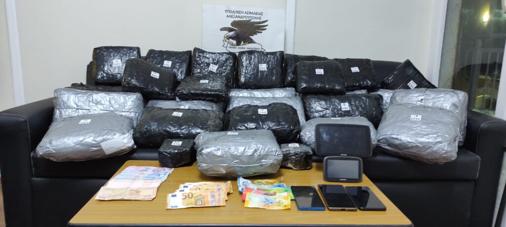 Συγκεκριμένα, κατά την έρευνα που διενεργήθηκε με τη συνδρομή του αστυνομικού σκύλου ανίχνευσης ναρκωτικών “Laika” της Υποδιεύθυνσης Ασφάλειας Αλεξανδρούπολης, εντοπίστηκε στο κάτω μέρος του οχήματος ειδικά διαμορφωμένη κρύπτη η οποία περιείχε (27) νάιλον συσκευασίες με ακατέργαστη κάνναβη, συνολικού βάρους 25.220 γραμμαρίων και (2) νάιλον συσκευασίες με κατεργασμένη κάνναβη (σοκολάτα), συνολικού βάρους 1.325 γραμμαρίων .