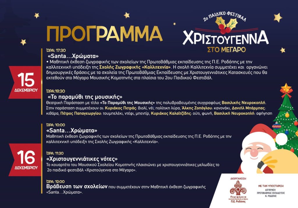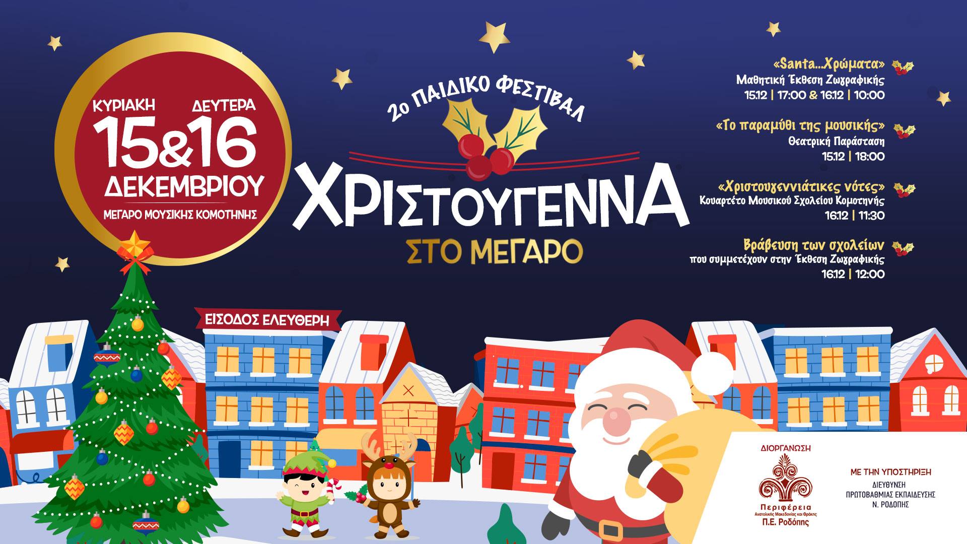 Το 2ο Παιδικό Φεστιβάλ «Χριστούγεννα στο Μέγαρο» οργανώνεται με την υποστήριξη της Διεύθυνσης Πρωτοβάθμιας Εκπαίδευσης Ροδόπης.
