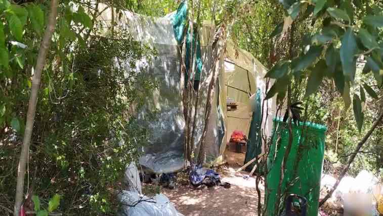 Στον χώρο της φυτείας εντοπίστηκαν σκαπτικά εργαλεία, σύνεργα και είδη ποτίσματος, ενώ στη σκηνή βρέθηκαν οικιακά σκεύη, τρόφιμα, κουβέρτες και άλλα αντικείμενα.