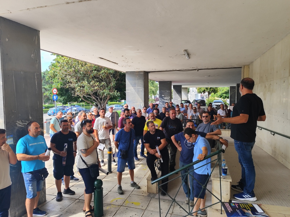 Στη συγκέντρωση που έγινε σήμερα το πρωί έξω από το κτίριο της πρώην Νομαρχίας μίλησε στους παριστάμενους ο Πρόεδρος του Σωματείου Σάκης Δεμίρης καλώντας τους συναδέλφους του σε στήριξη της κινητοποίησης η οποία προς το παρόν έχει ορίζοντα μέχρι την Παρασκευή .
