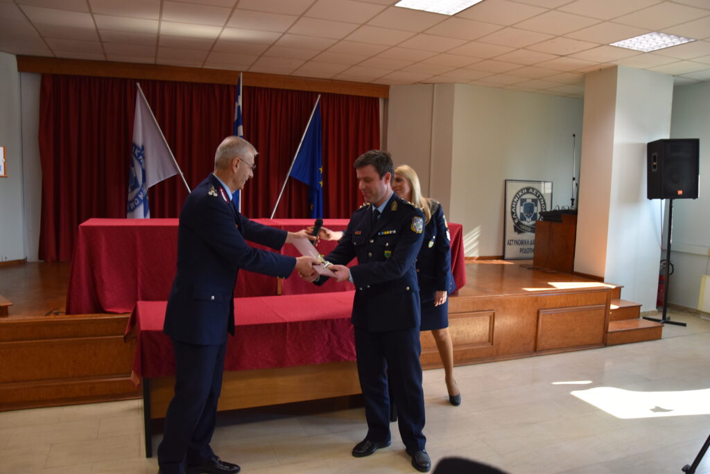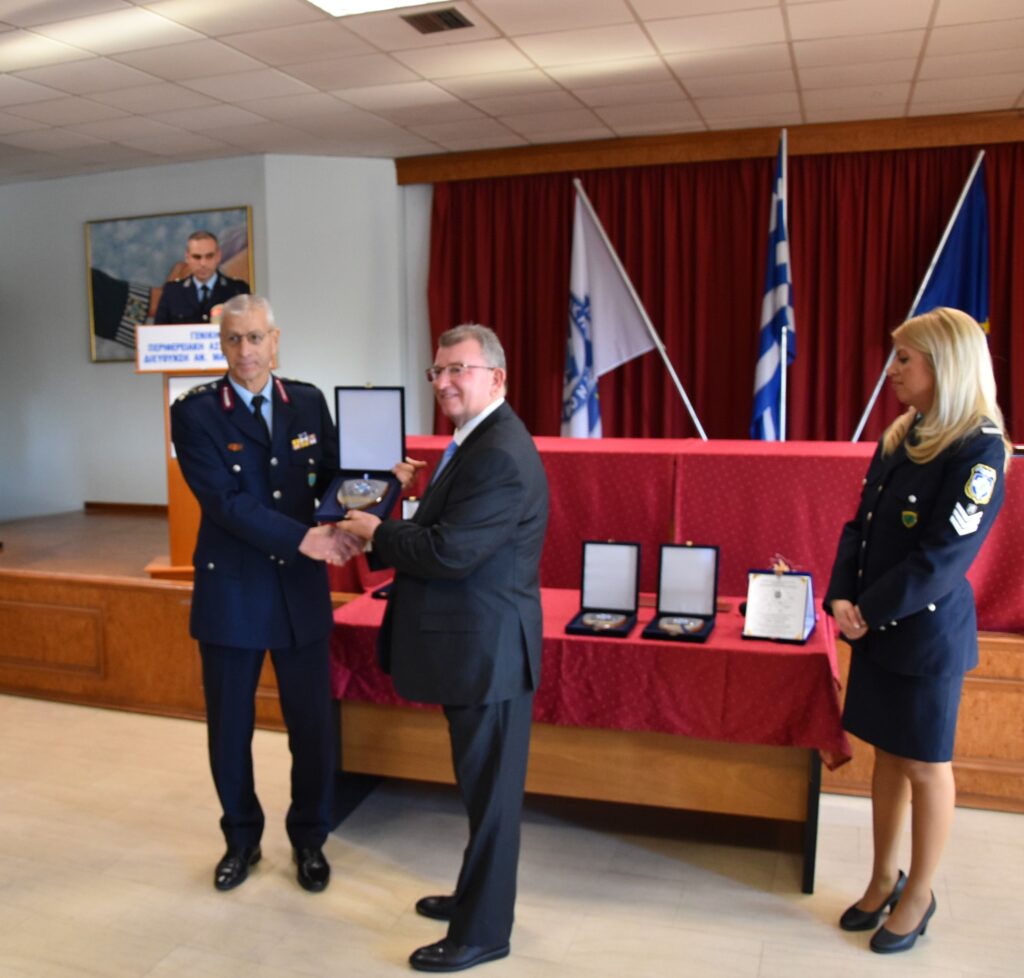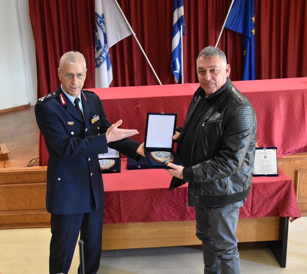 Κατά τη διάρκεια της τελετής, ο Υπαρχηγός της Ελληνικής Αστυνομίας Αντιστράτηγος Πασχάλης ΣΥΡΙΤΟΥΔΗΣ απένειμε αναμνηστικές πλακέτες στον Ταξίαρχοε.α. Ευάγγελο ΓΚΙΚΑ, στον Ταξίαρχο ε.α. Χρήστο ΣΤΑΜΠΟΥΛΗ, στον Ταξίαρχοε.α. Αθανάσιο ΣΕΡΤΗ, στον Ταξίαρχο ε.α Πασχάλη ΓΙΩΡΗ, στον Ταξίαρχο ε.α. Κωνσταντίνο ΧΑΤΖΗΣΤΑΜΑΤΗ,για την πολύτιμη προσφορά τους στην Ελληνική Αστυνομία.