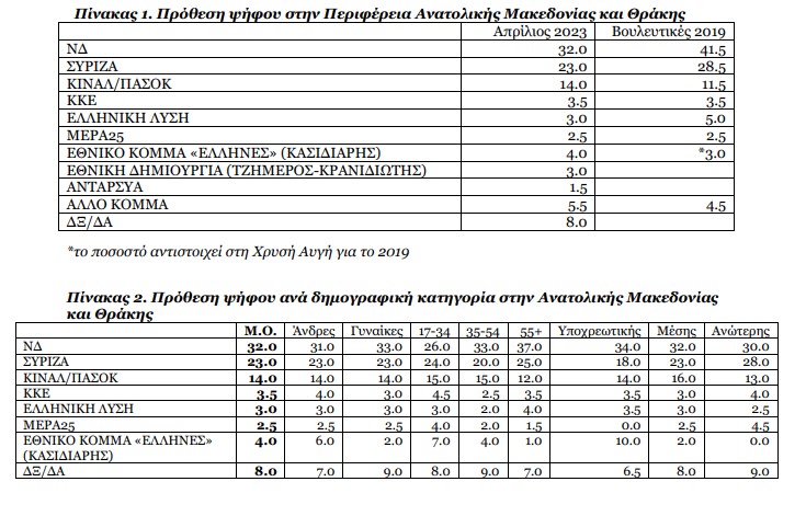 Ως προς την πρόθεση ψήφου στις επόμενες βουλευτικές εκλογές του 2023, η έρευνα κατέγραψε