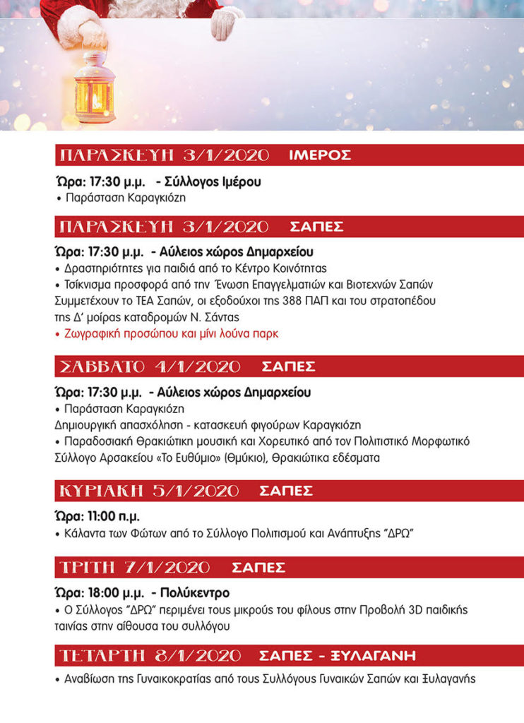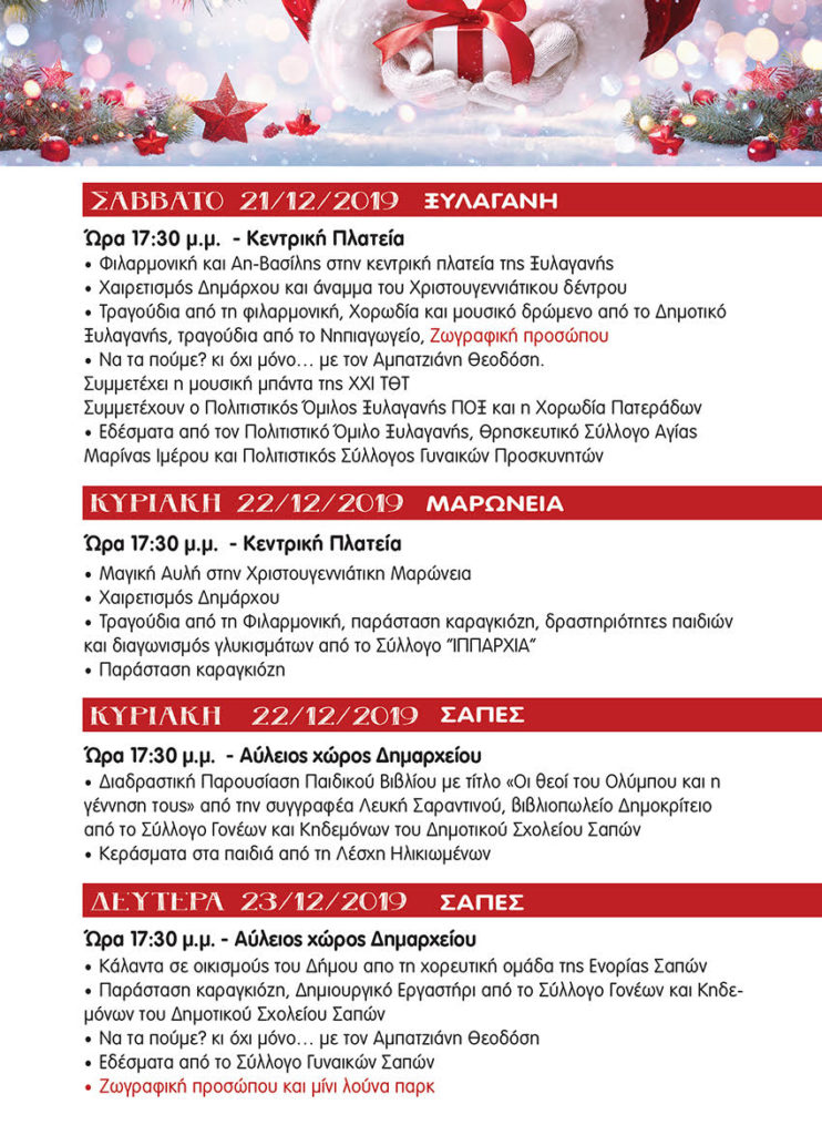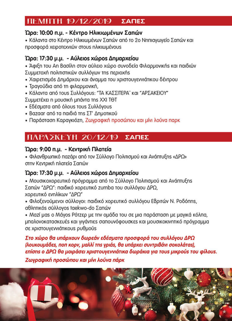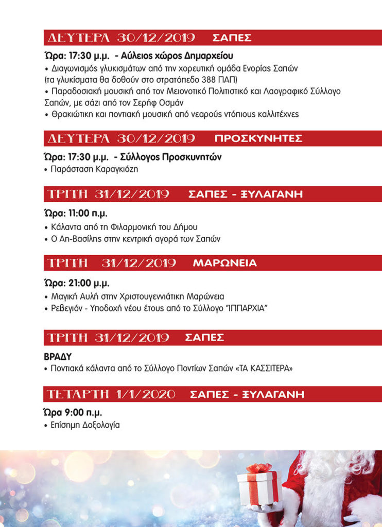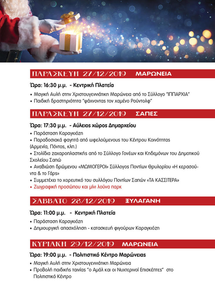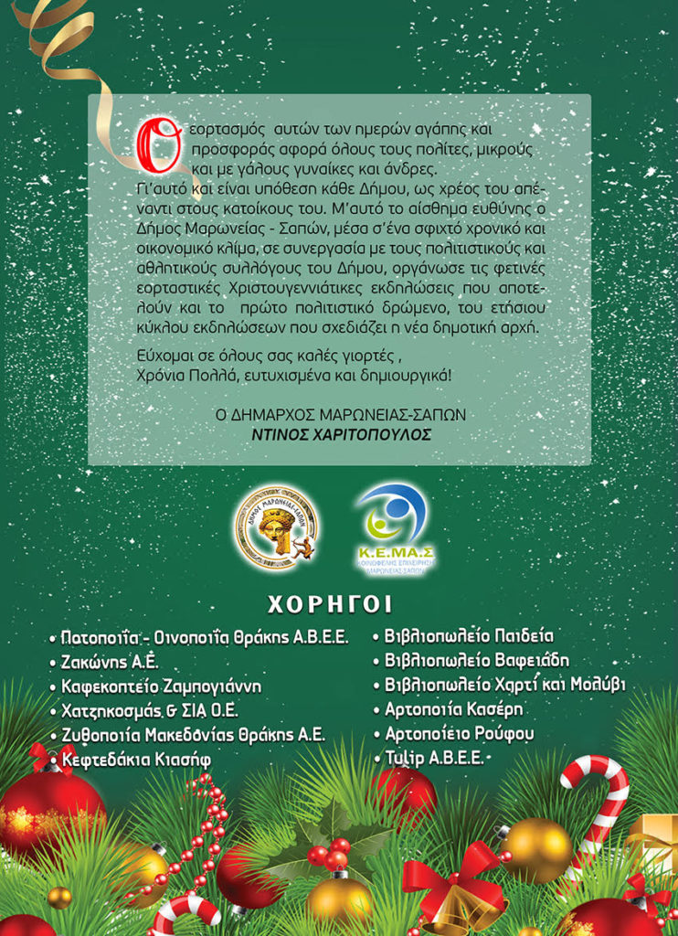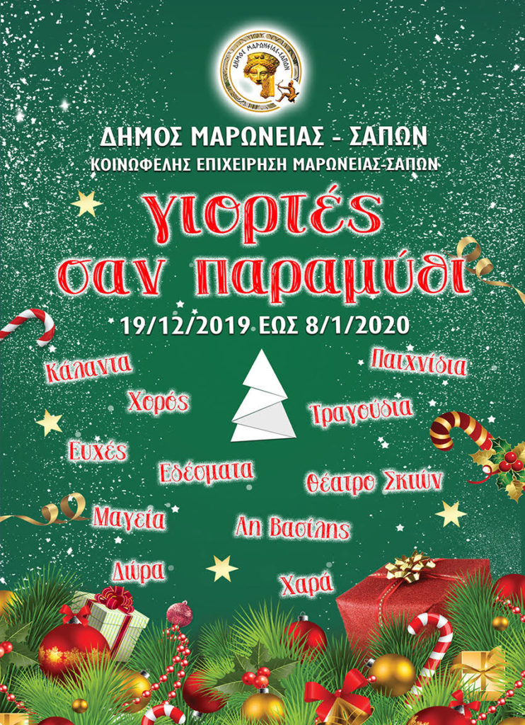 Εορταστικό πρόγραμμα στο Δήμο Μαρώνειας Σαπών