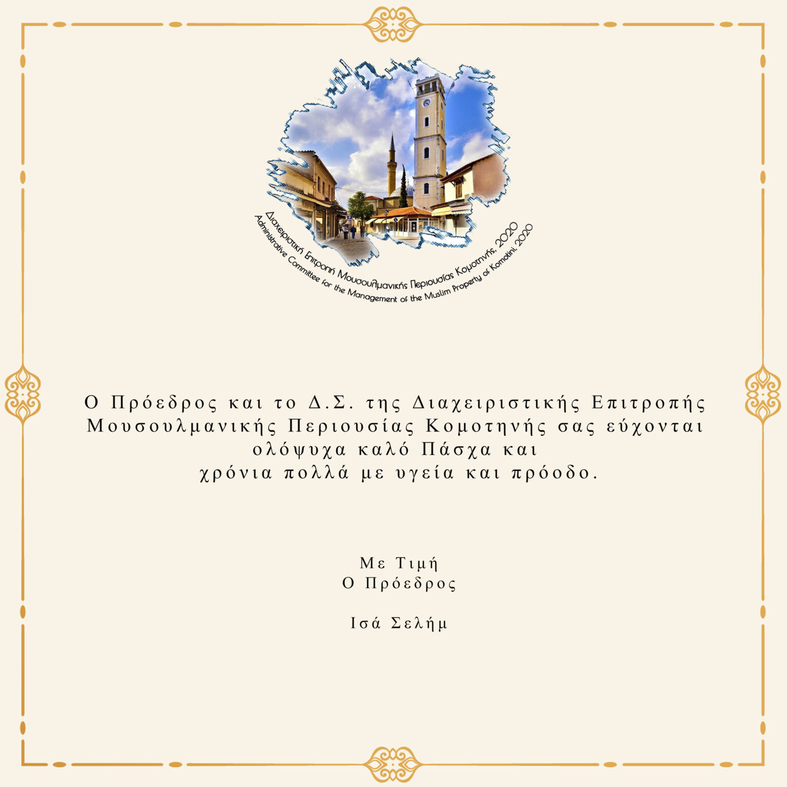Ευχές της Διαχειριστικής Επιτροπής Μουσουλμανικής Περιουσίας Κομοτηνής