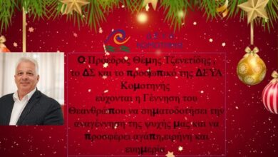 Ευχές της ΔΕΜΠ Κομοτηνής για τα Χριστούγεννα και το νέο Ετος