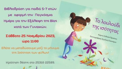 Δημοτική Βιβλιοθήκη :βιβλιοδράση για παιδιά 5-7 ετών με αφορμή την Παγκόσμια Ημέρα για την Εξάλειψη της Βίας κατά των Γυναικών
