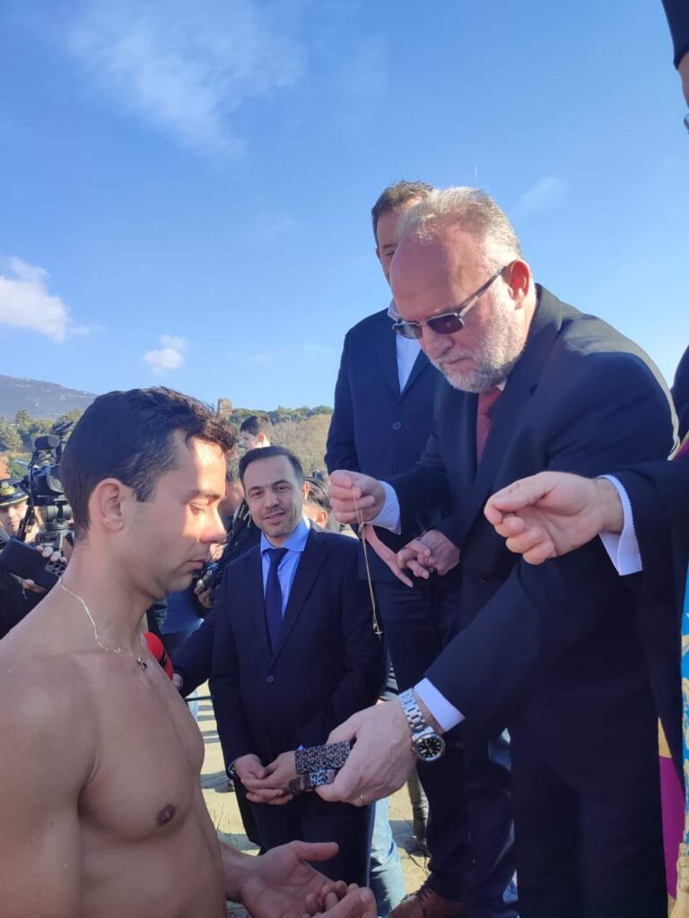Στους κολυμβητές Νεκτάριο-Θεόδωρο Φραγκούλη (σιντριβάνι του Δημαρχείου Σαπών), Φίλιππο Τσακίρη (λιμάνι Αγ. Χαραλάμπους -Μαρώνεια) και Δαμάζη Γκαραγκασίδη (λίμνη Κιζαρίου-φράγμα Ιασίου) που κατάφεραν να πιάσουν τον σταυρό, ο Δήμος Μαρωνείας-Σαπών δώρισε από έναν αναμνηστικό σταυρό τους οποίους τους προσέφερε ο Δήμαρχος Μαρωνείας-Σαπών κ. Ντίνος Χαριτόπουλος.