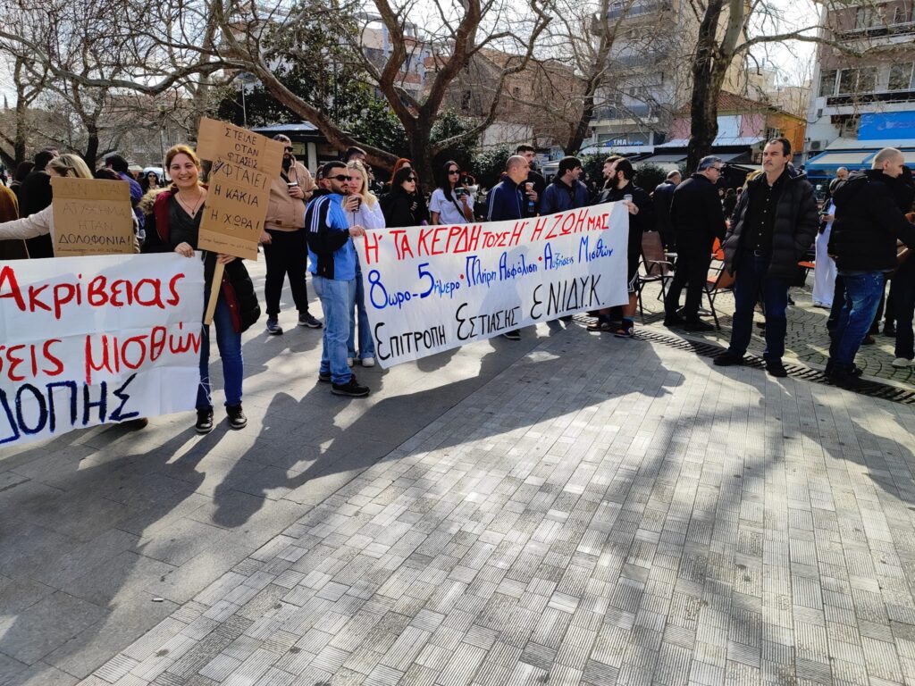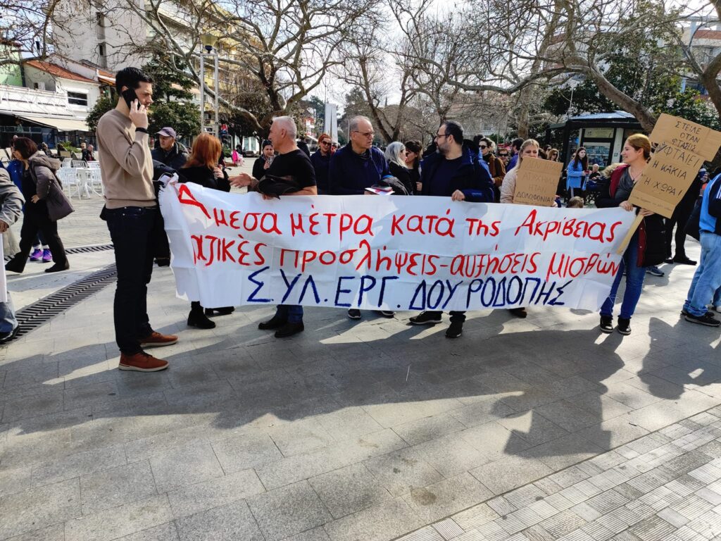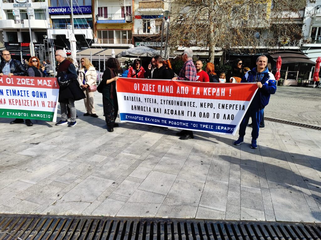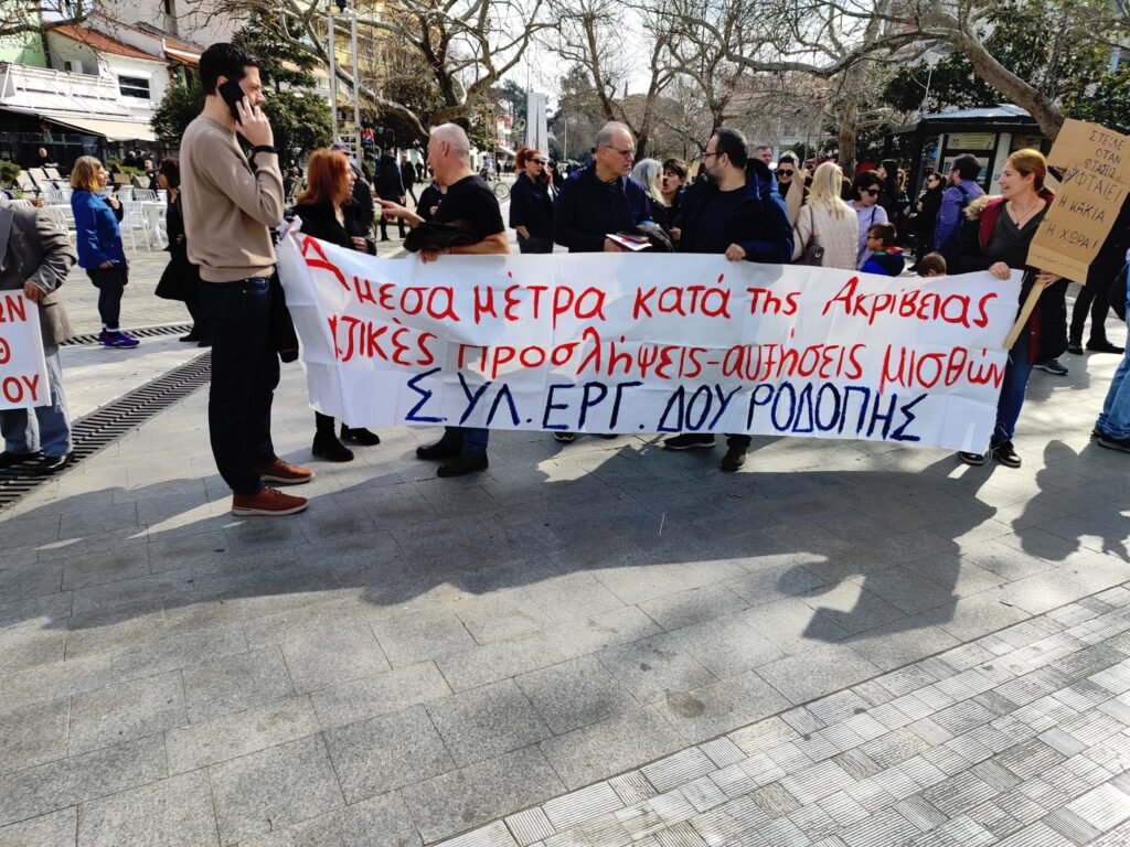 Με συνθήματα “Οι ζωές μας πάνω από τα κέρδη τους” και ” να μην ξεχαστεί το έγκλημα των Τεμπών” φοιτητές, υπάλληλοι, εκπαιδευτικοί, μαθητές και εργαζόμενοι διαδηλώνουν στην πλατεία της Κομοτηνής στα πλαίσια της πανελλαδικής κινητοποίησης και απεργίας που κήρυξαν για σήμερα οι συνδικαλιστικοί φορείς τους αλλά και ως εκδήλωση μνήμης για τους 57 νεκρούς του τραγικού δυστυχήματος των Τεμπών ένα χρόνο μετά .