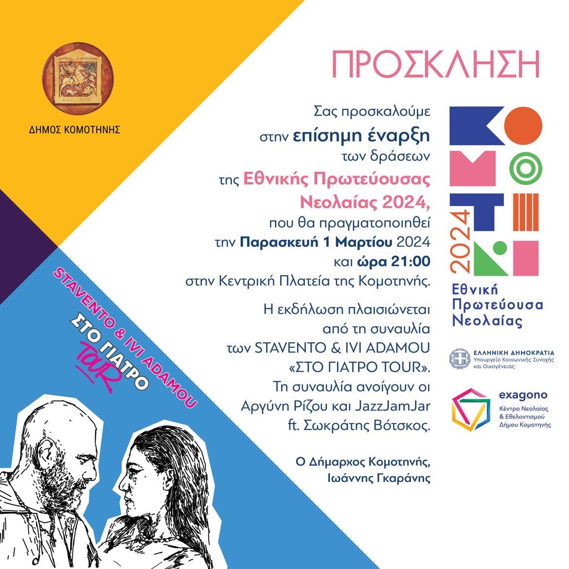 Mε STAVENTO και Ήβη Αδάμου στην πλατεία Κομοτηνής την Παρασκευή ξεκινούν οι δράσεις για την Εθνική Πρωτεύουσα Νεολαίας