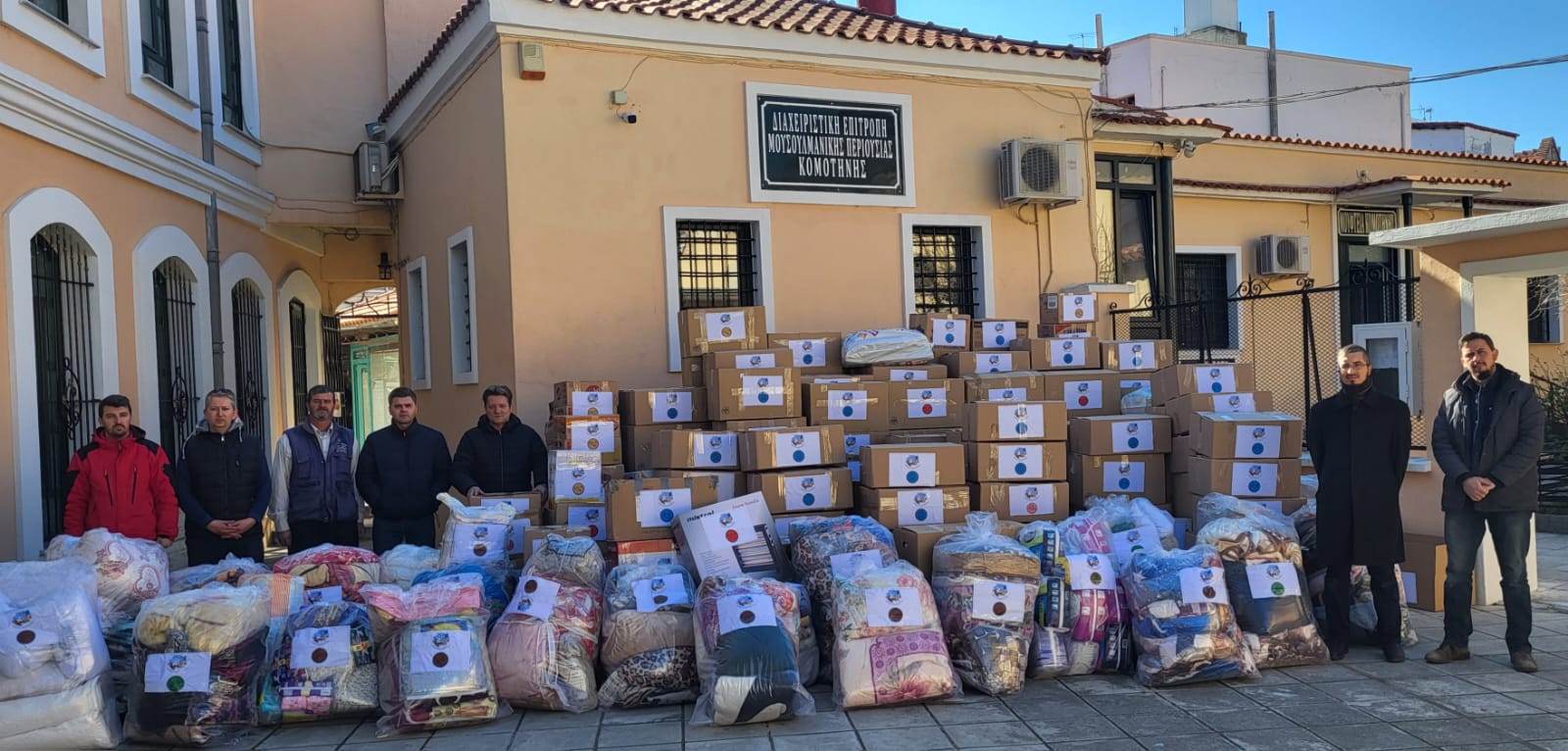 H Διαχειριστική Επιτροπή Μουσουλμανικής Περιουσίας Κομοτηνής αισθάνεται την υποχρέωση να ευχαριστήσει θερμά τον κόσμο για την συγκινητική του ανταπόκριση στο κάλεσμα για την στήριξη των σεισμοπαθών Τουρκίας και Συρίας. Μέσα σε λιγότερο από τέσσερεις μέρες συγκεντρώθηκε μία τεράστια ποσότητα ειδών ένδυσης, τροφίμων, φαρμάκων, κουβερτών, συσκευών απαραίτητων σε τέτοιες στιγμές κτλ.