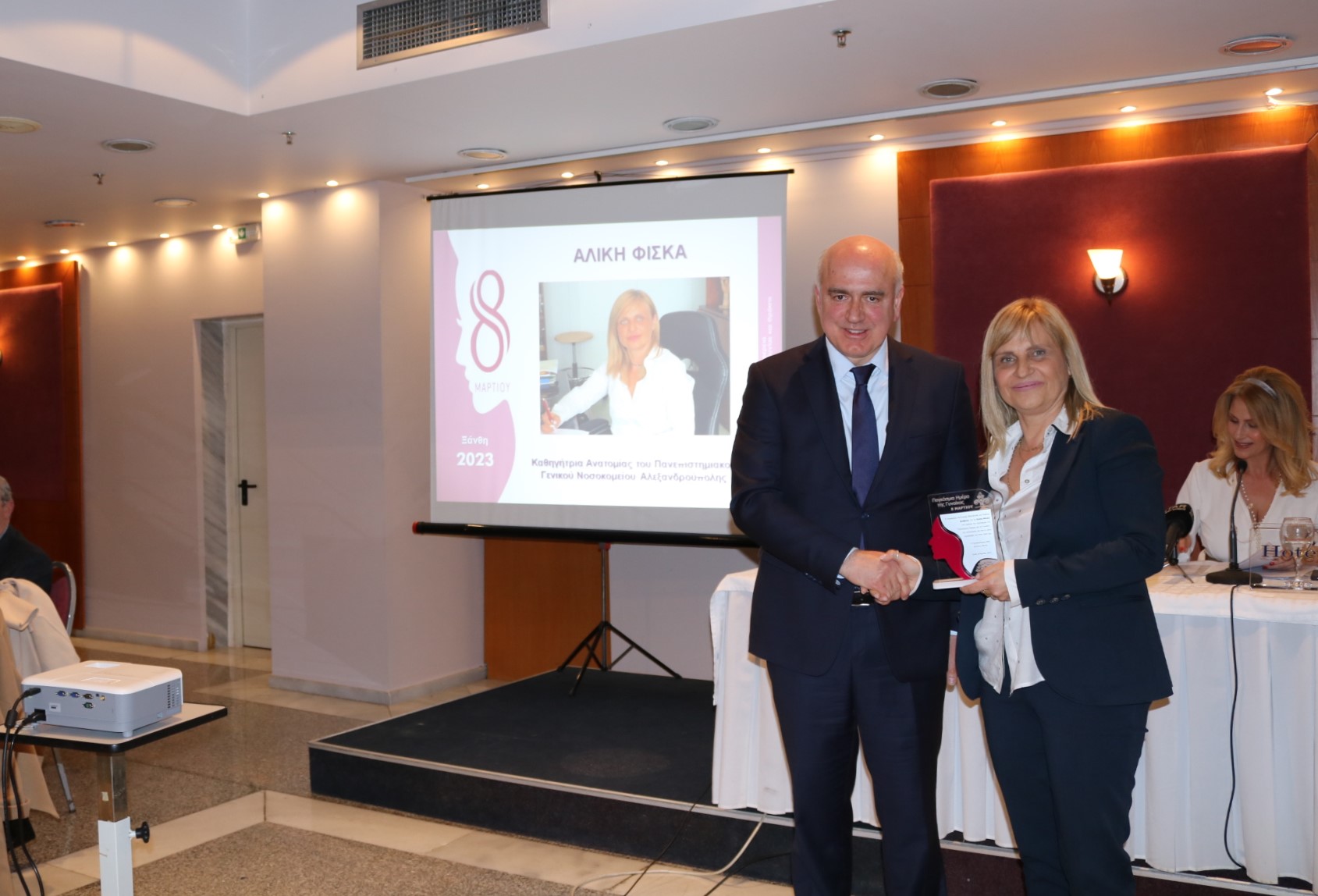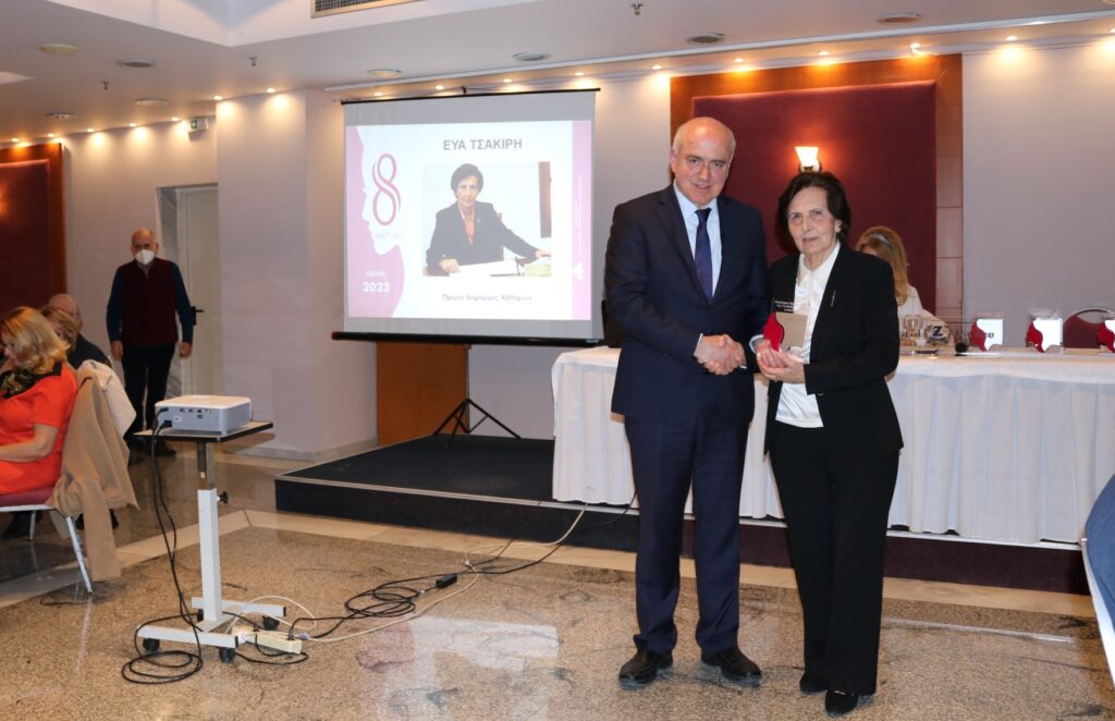 Την εκδήλωση χαιρέτισε ο Περιφερειάρχης ΑΜΘ κ. Χρήστος Μέτιος ο οποίος και παρέδωσε το τιμητικό βραβείο στην κυρίαΤσακίρη.