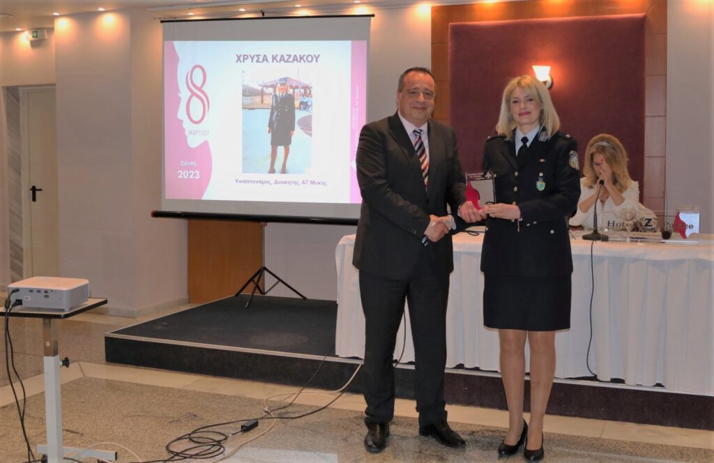 - Χρύσα Καζάκου, Υπαστυνόμος, Διοικητής ΑΤ Μύκης, για την εθελοντική δράση της στην ενημέρωση γυναικών σε ζητήματα ενδοοικογενειακής νομοθεσίας και στην ενημέρωση μαθητών σε θέματα κυκλοφοριακής αγωγής
