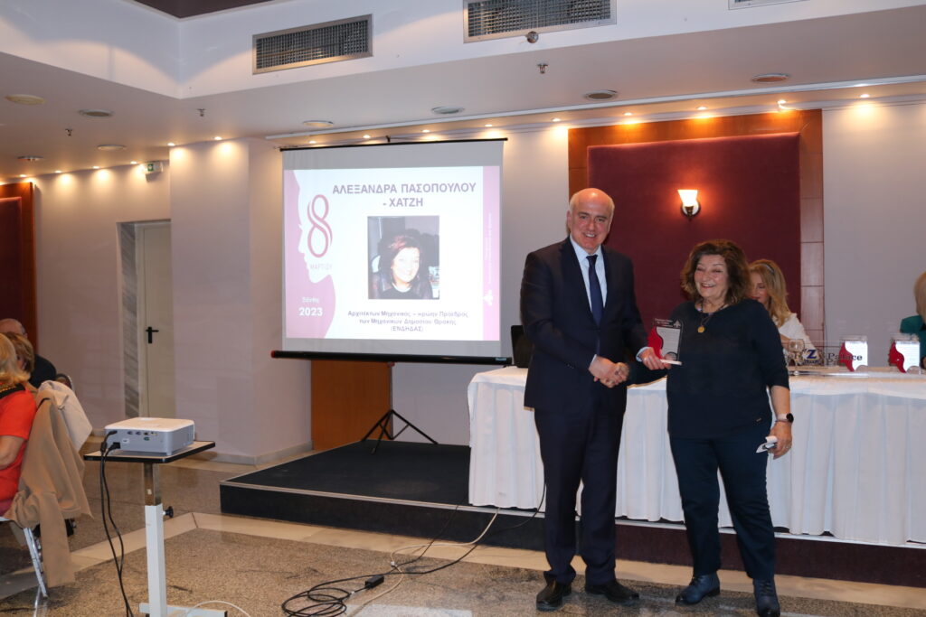 - Αλεξάνδρα Πασοπούλου – Χατζή, Αρχιτέκτων Μηχανικός, πρώην Πρόεδρος Μηχανικών Δημοσίου Θράκης (ΕΝΔΗΔΑΣ), για το σύνολο της επαγγελματικής σταδιοδρομίας της