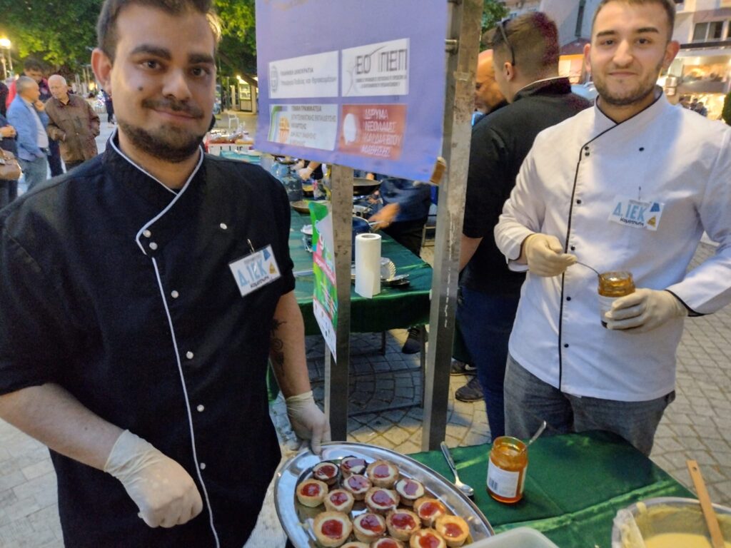 Τορτίγιες με λαχανικά και ξηρούς καρπούς, ταρτάκια με κρέμα πατισερί από γάλα καρύδας, μπέργκερ, ζυμαρικά και άλλες λαχταριστές, πολύχρωμες vegan λιχουδιές μαγείρεψαν επί τόπου και πρόσφεραν στον κόσμο οι εκπαιδευόμενοι της ειδικότητας “Τεχνικός Μαγειρικής Τέχνης – Αρχιμάγειρας (ΣΕΦ)” του Π.Δ.ΙΕΚ Κομοτηνής, με την καθοδήγηση των εκπαιδευτών τους Δημήτρη Τσιμουρτακίδη και Θεόδωρου Κατιγκαρίδη αλλά και την επίβλεψη της διευθύντριας του Π.ΔΙΕΚ Αιμιλίας Καζάκη και των υποδιευθυντών Ανέστη Σταυρίδη και Ασπασίας Ιωαννιδου.